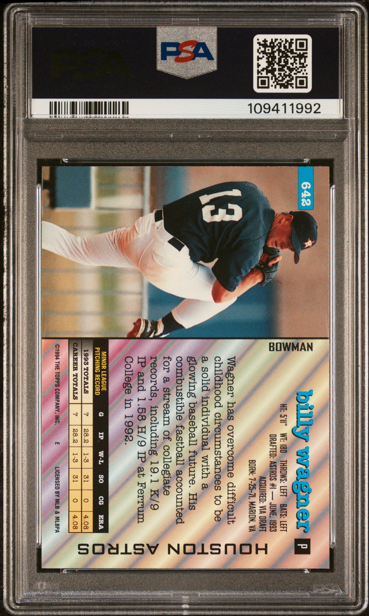 1994 BOWMAN BILLY WAGNER #642 ROOKIE CARD RC GRADED PSA 8 NM-MT RARE ASTROS