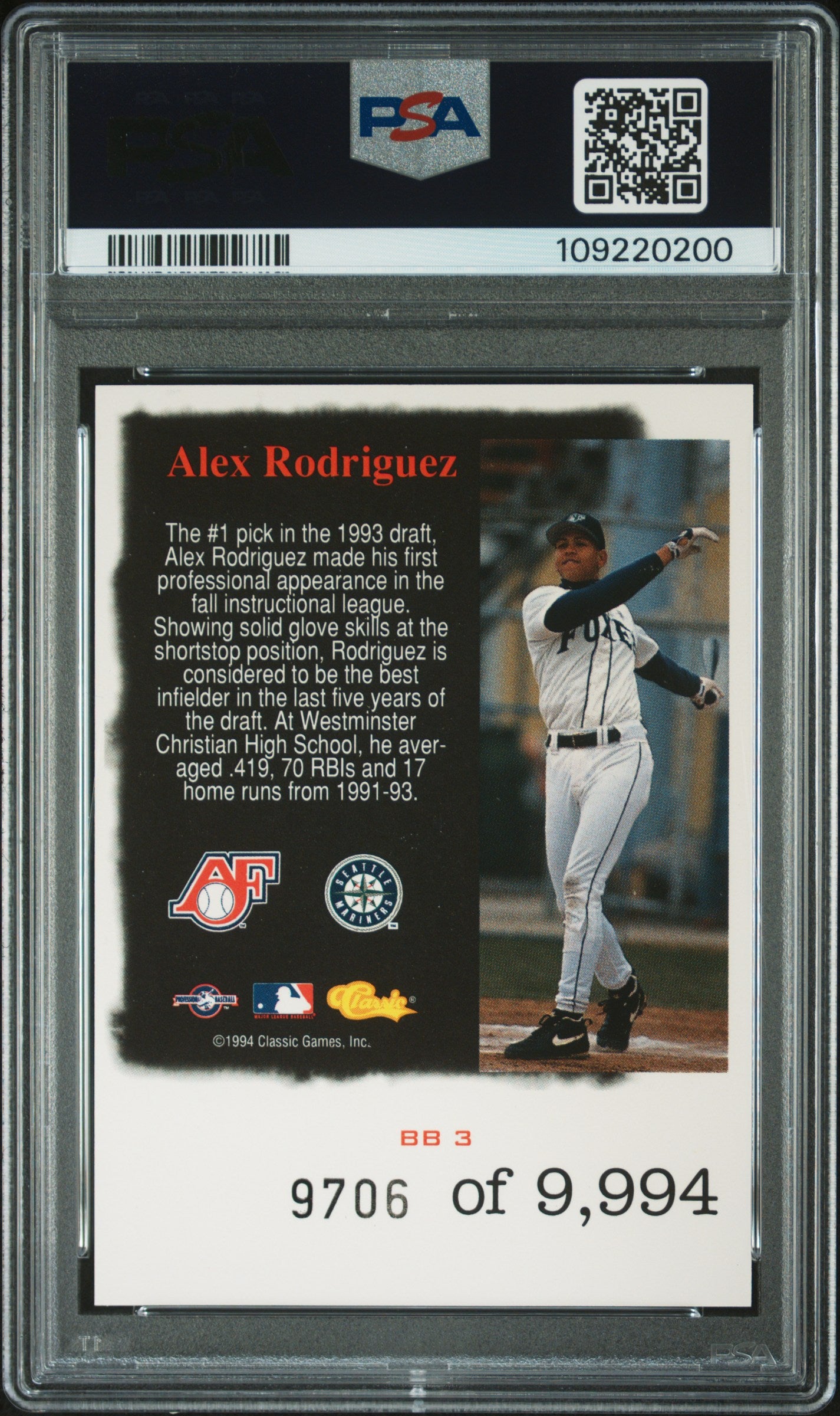 Home Shop 1994 and earlier 1994 CLASSIC BONUS BABY ALEX RODRIGUEZ #BB3 GRADED PSA 10 GEM MT