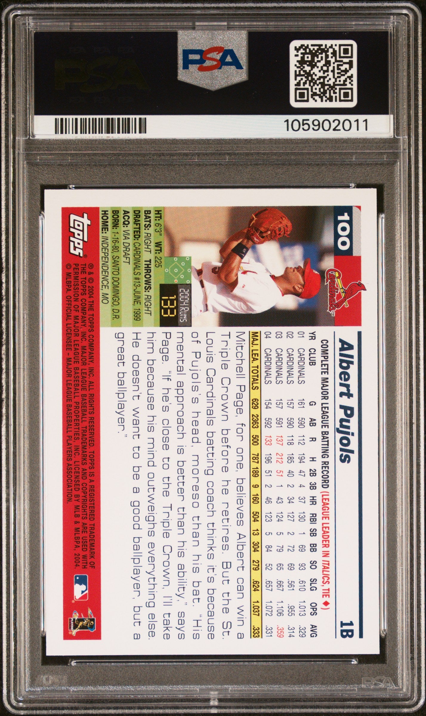 2005 Topps Albert Pujols #100 Graded PSA 10 Gem Mint Rare Future HOF!