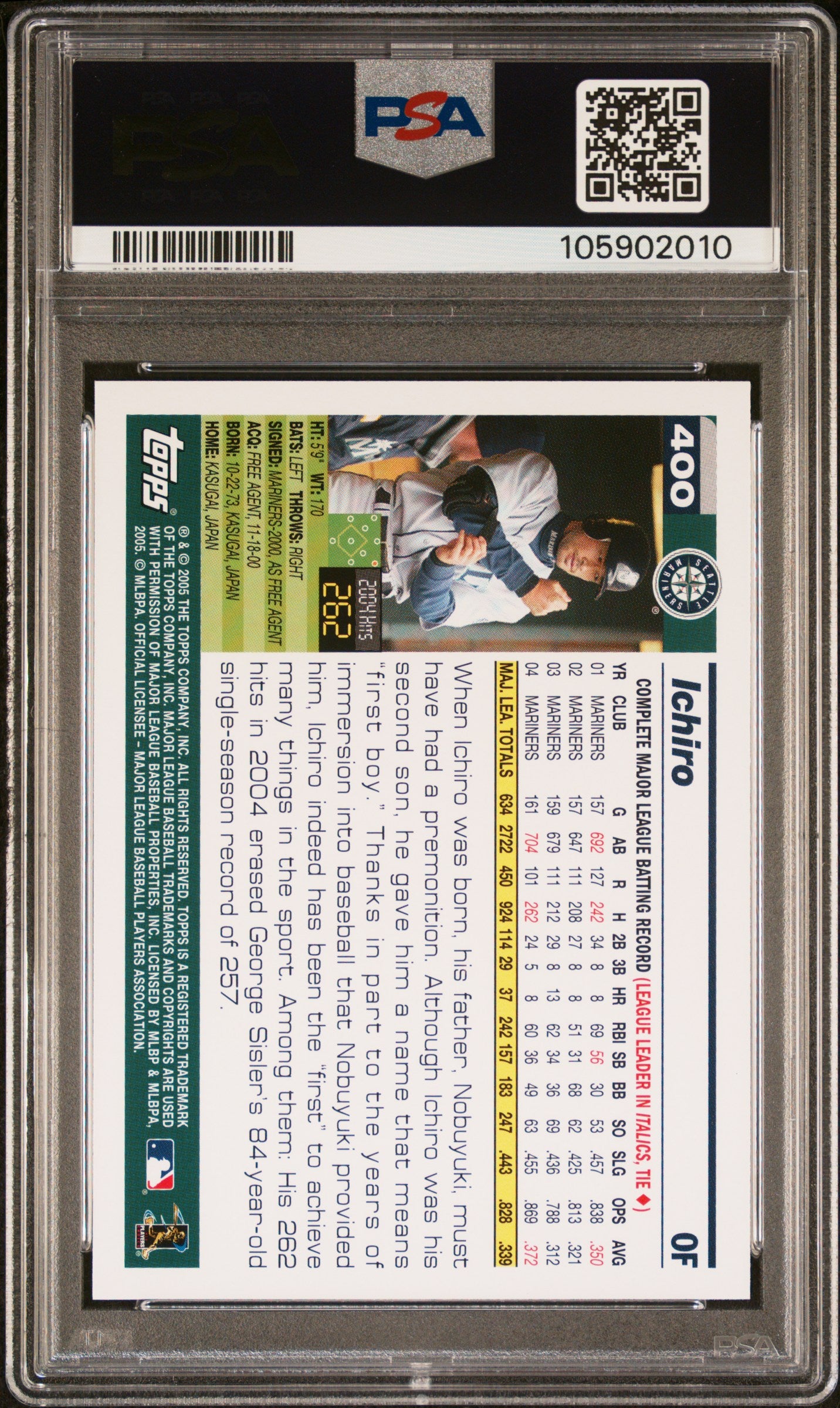 2005 Topps Ichiro #400 Graded PSA 10 Gem Mint Rare Mariners HOF!