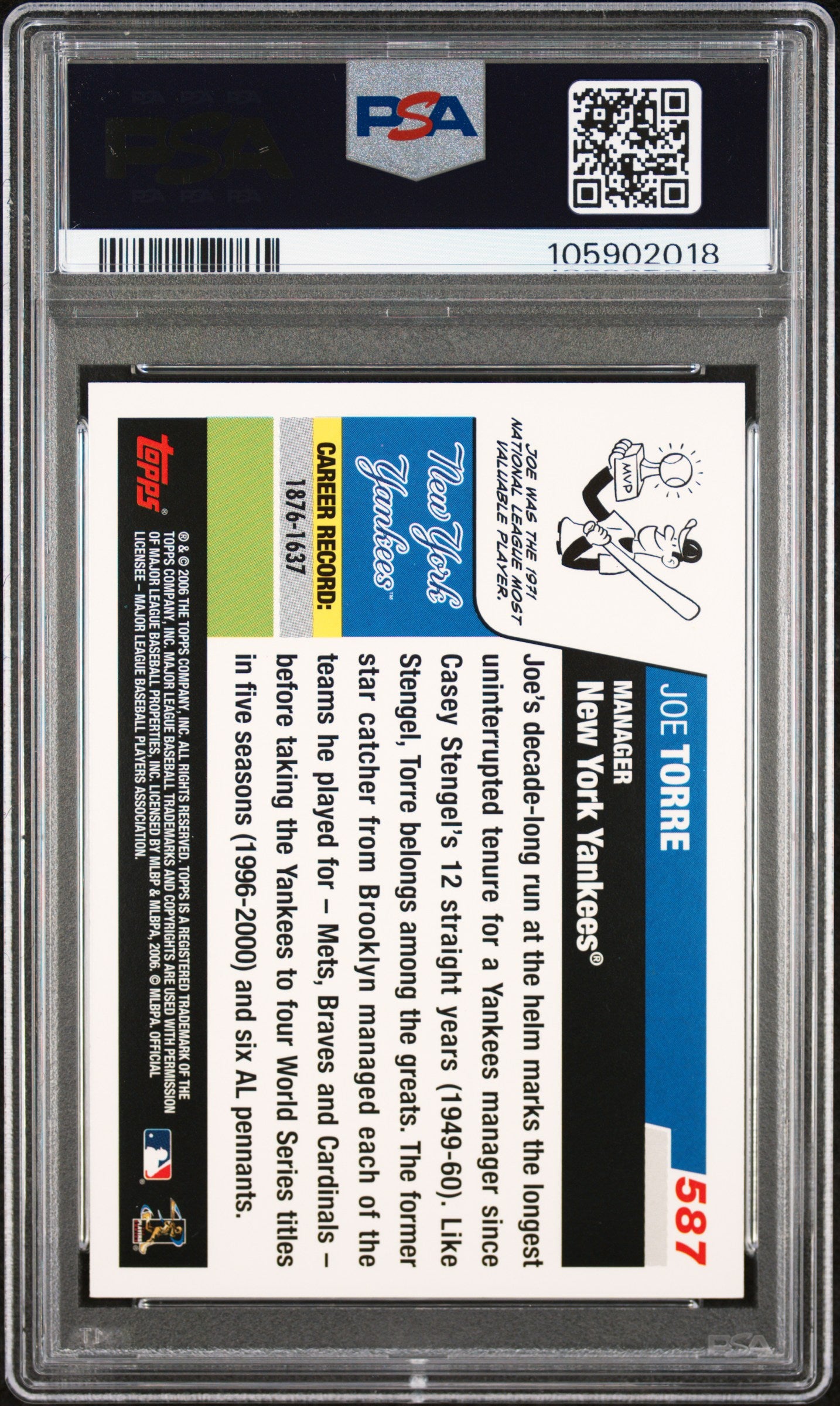 2006 Topps Joe Torre #587 Rookie RC Graded PSA 10 Gem Mint Yankees HOF