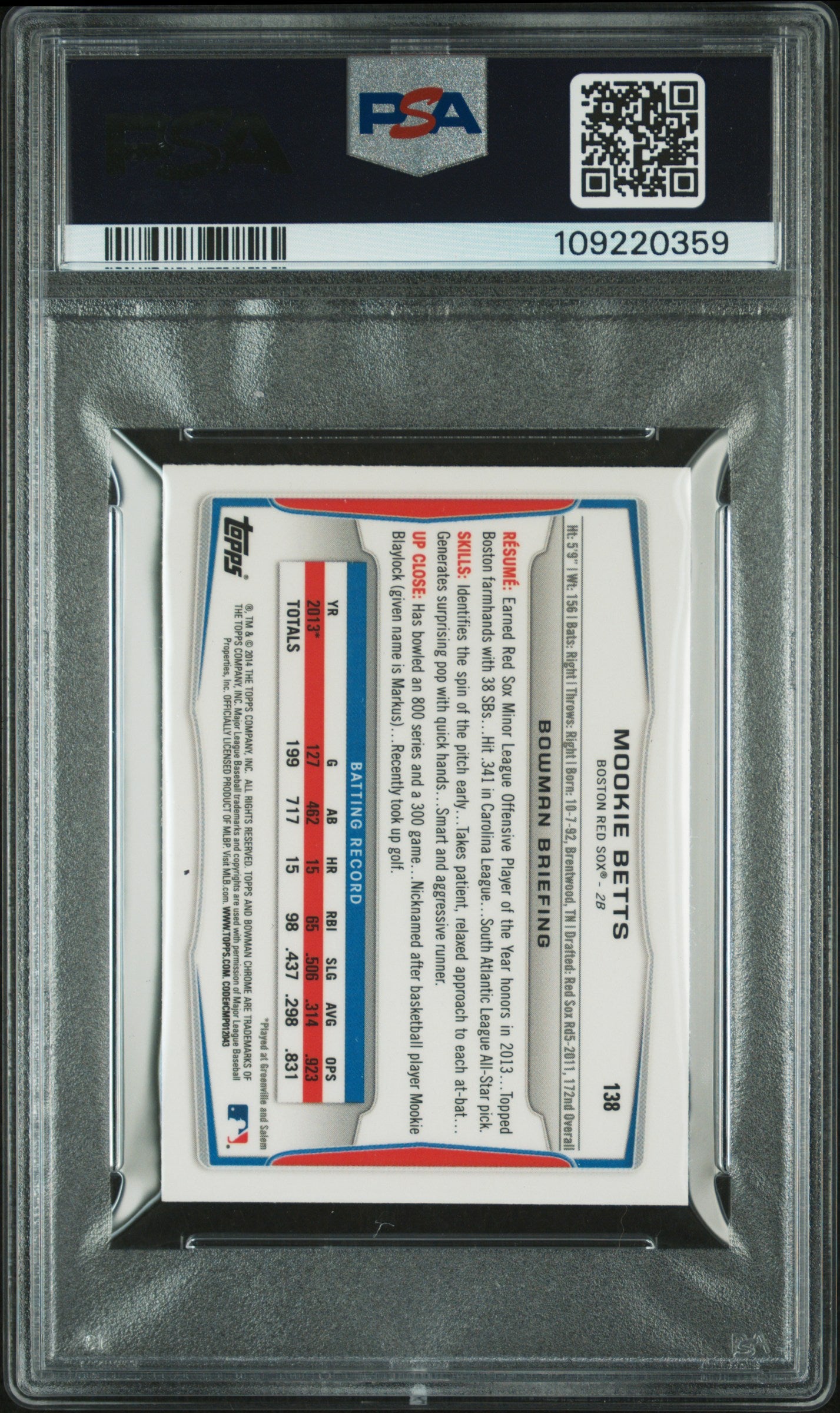 2014 Bowman Chrome Mini Mookie Betts 1st #138 Graded PSA 10 Gem Mint Sharp!