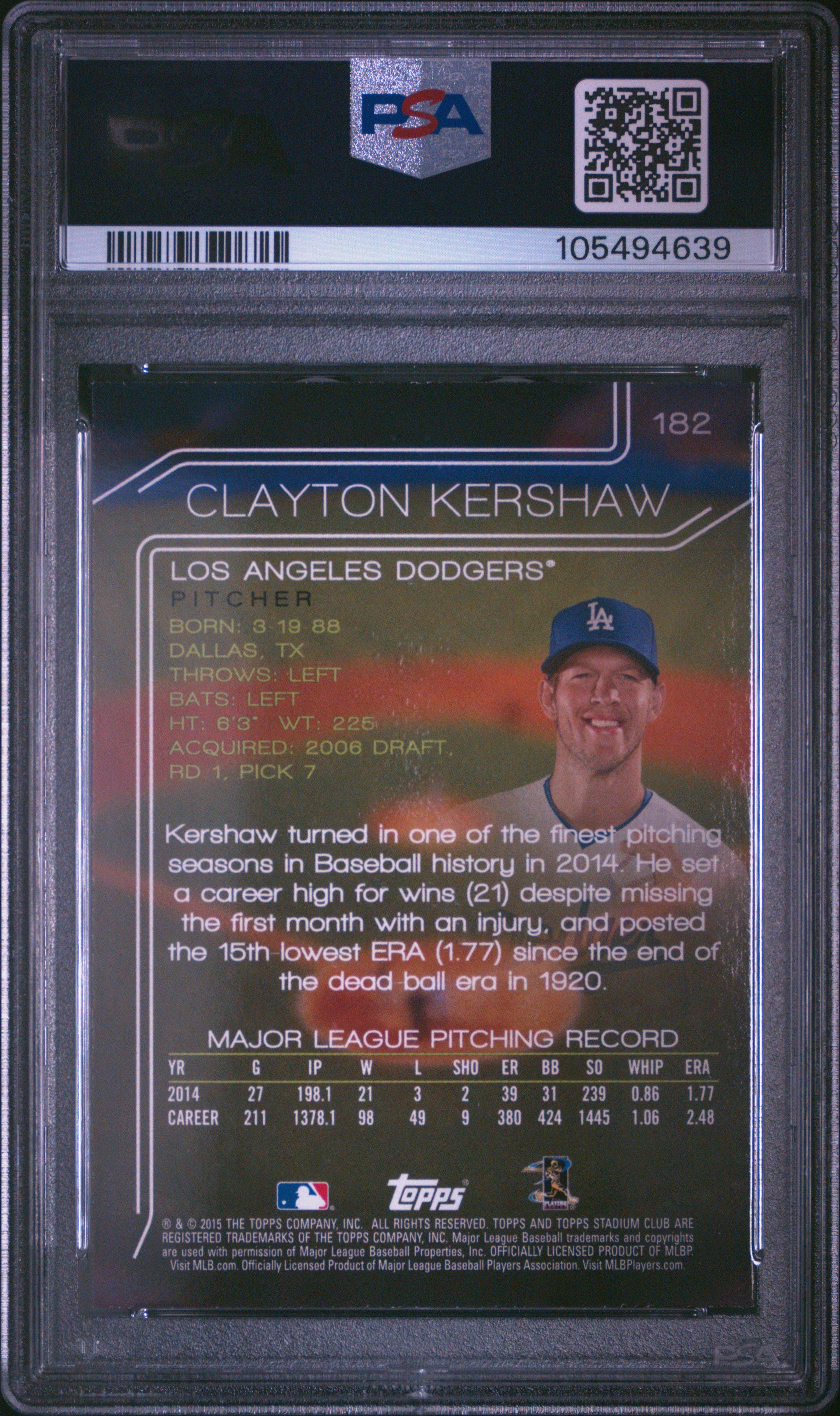 2015 Topps Stadium Club Clayton Kershaw #182 Gold Foil Graded PSA 9 Mint Rare!