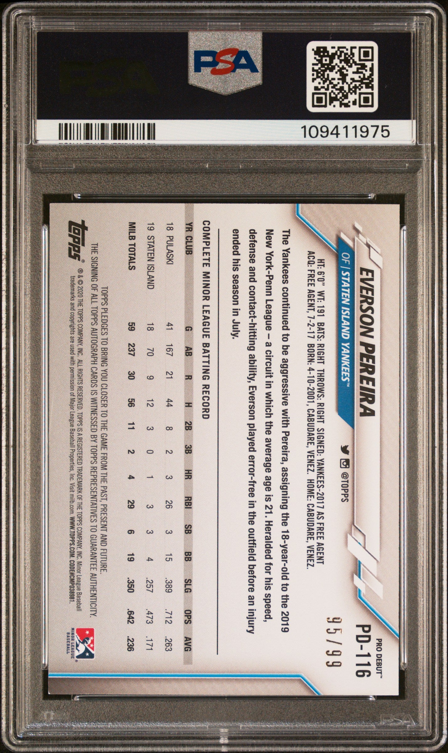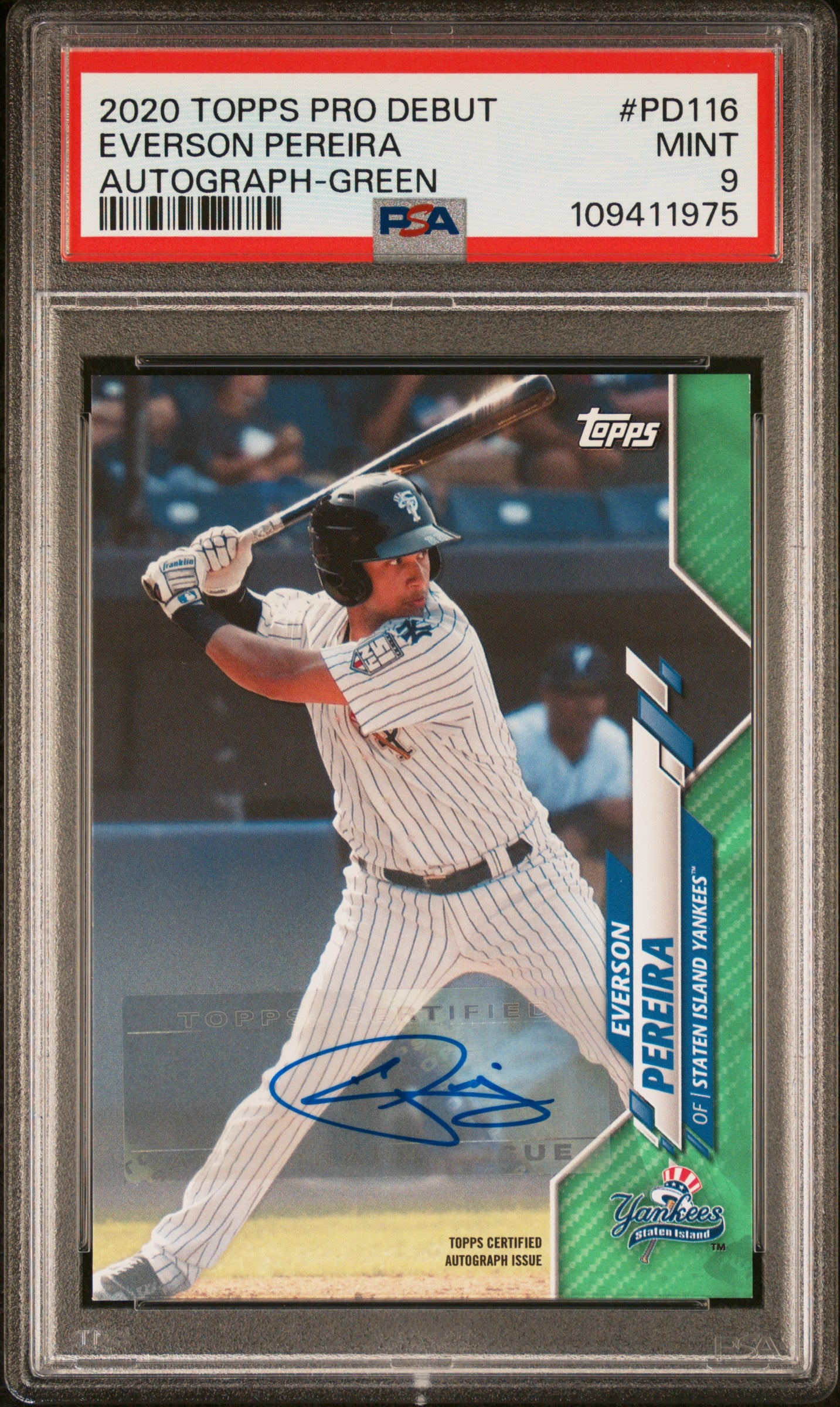 2020 TOPPS PRO DEBUT EVERSON PEREIRA #PD116 GREEN PARALLEL /99 GRADED PSA 9 MINT RARE