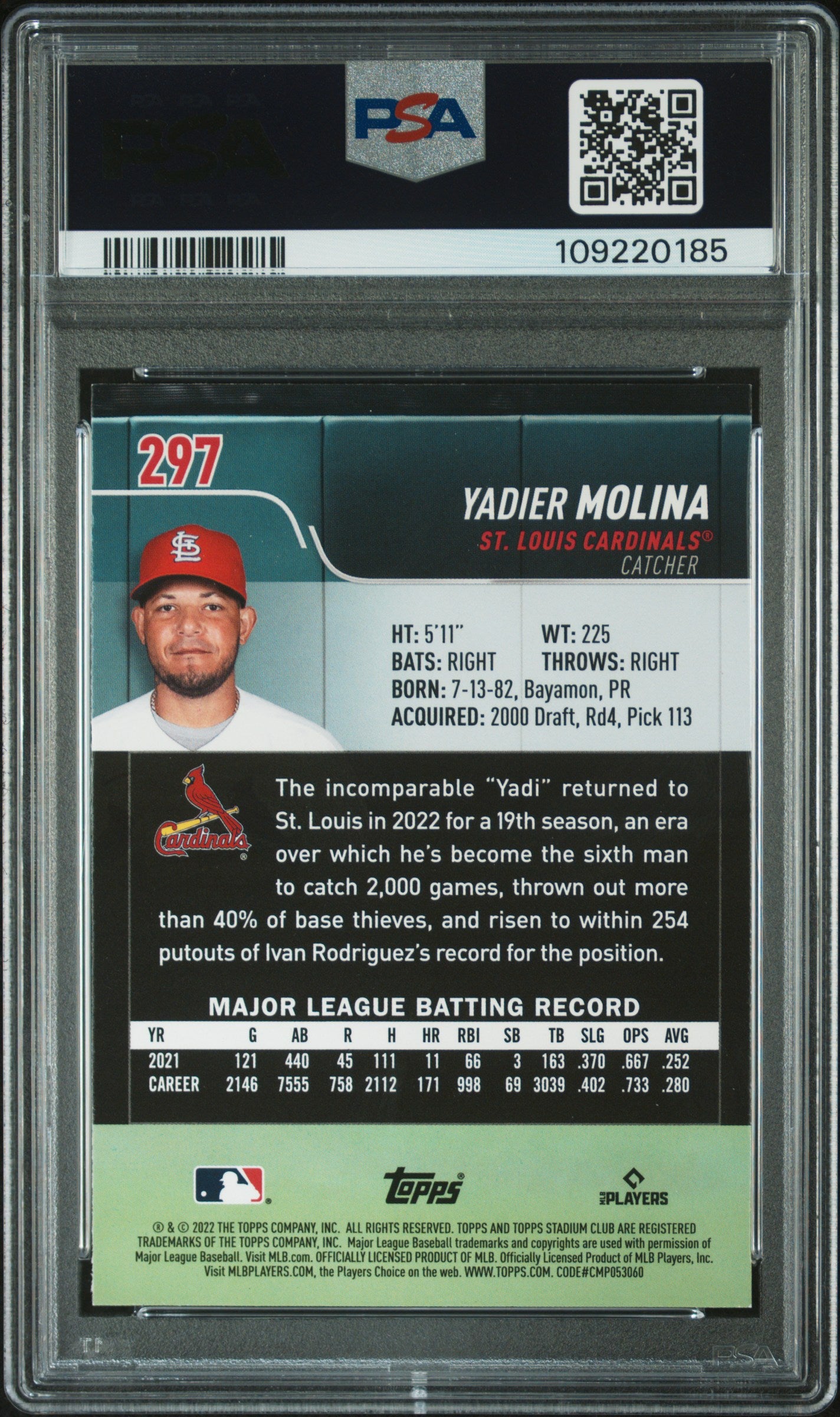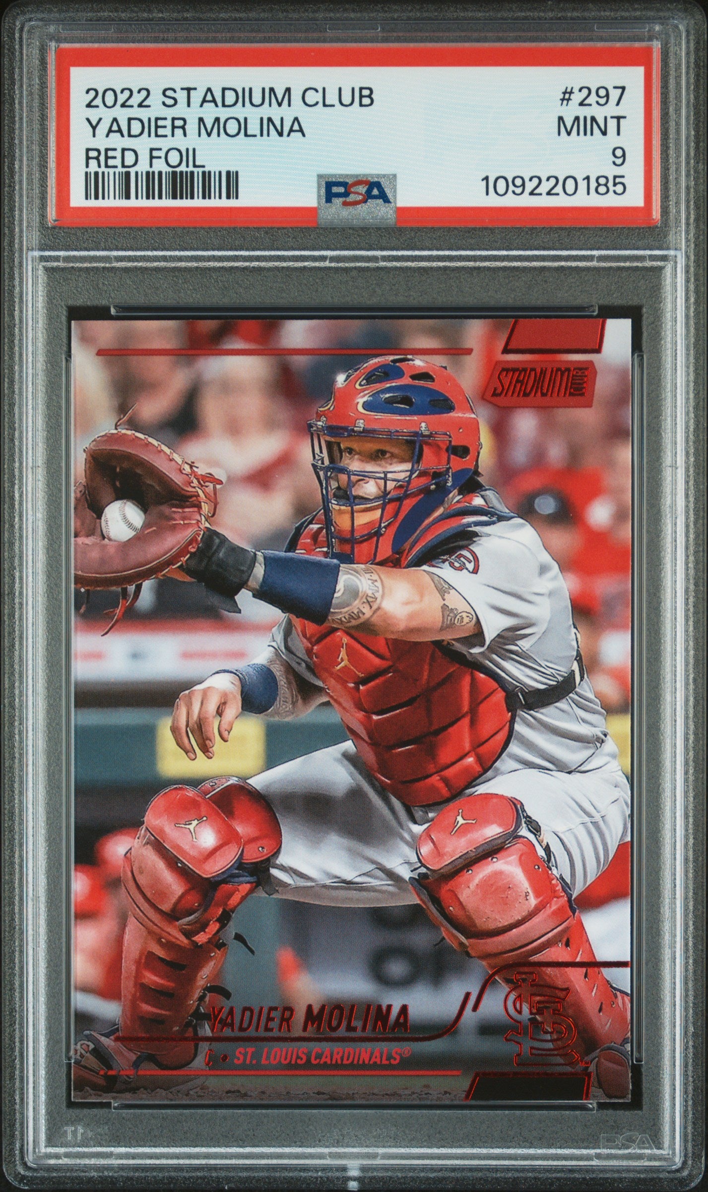 2022 TOPPS STADIUM CLUB YADIER MOLINA #297 RED FOIL PARALLEL GRADED PSA 9 MINT RARE