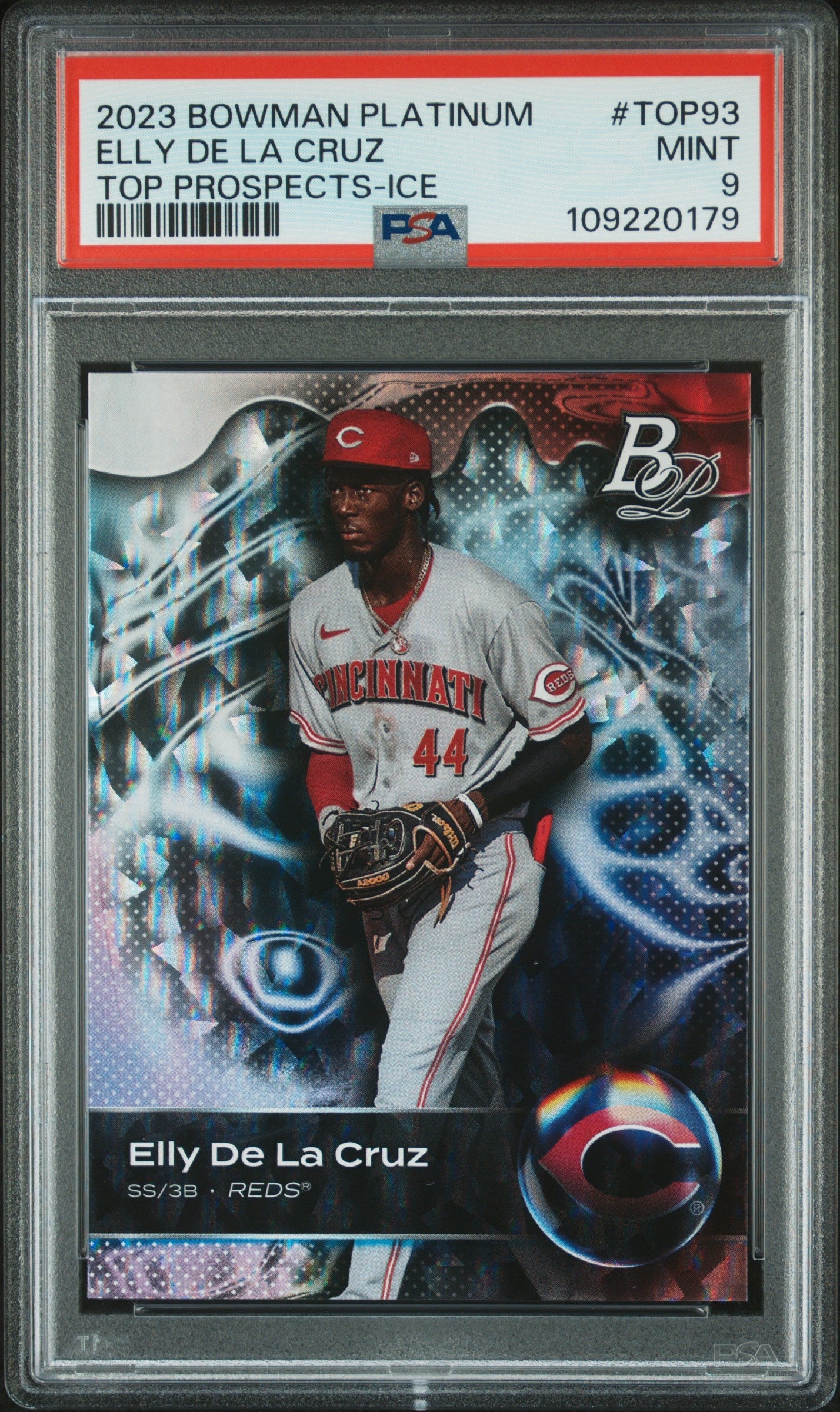 2023 BOWMAN PLATINUM ELLY DE LA CRUZ #TOP93 ICE FOIL PARALLEL GRADED PSA 9 MINT RARE