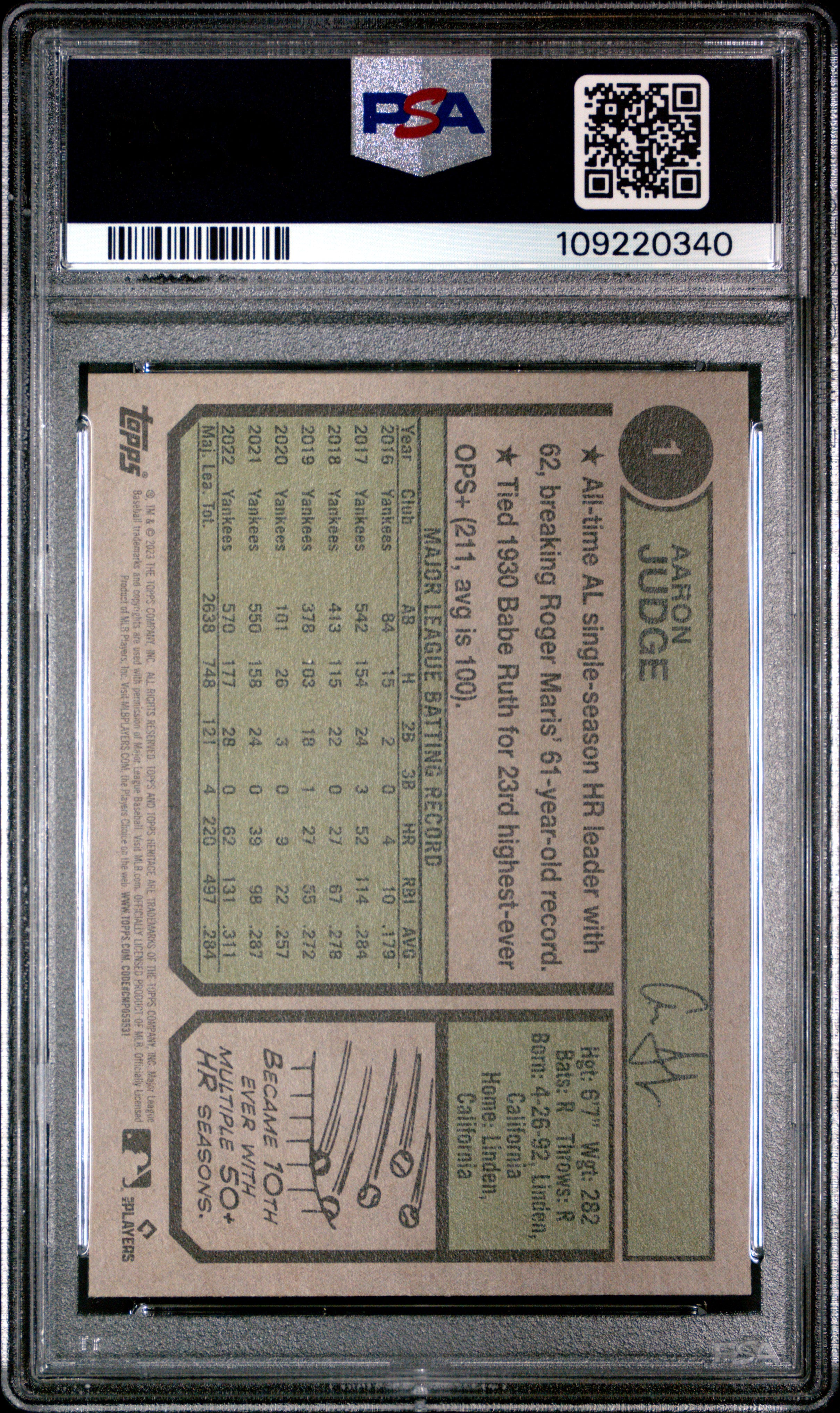 2023 TOPPS HERITAGE AARON JUDGE #1 AL HOME RUN KING GRADED PSA 10 GEM MINT