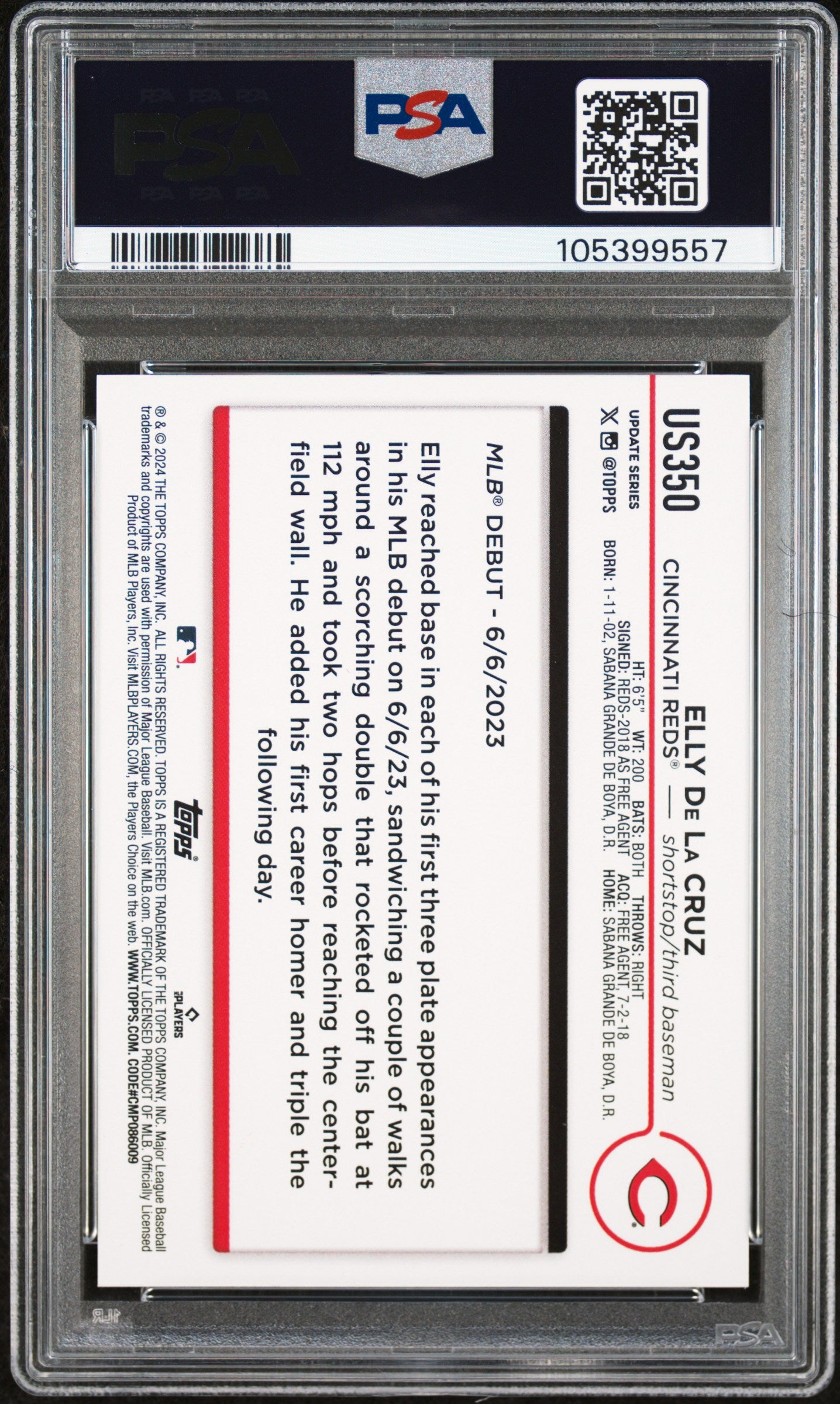 Home Shop All PSA 10 GEM MINT Collectibles 2024 TOPPS UPDATE ELLY DE LA CRUZ #US350 ROOKIE CARD RC GRADED PSA 10 GEM MINT