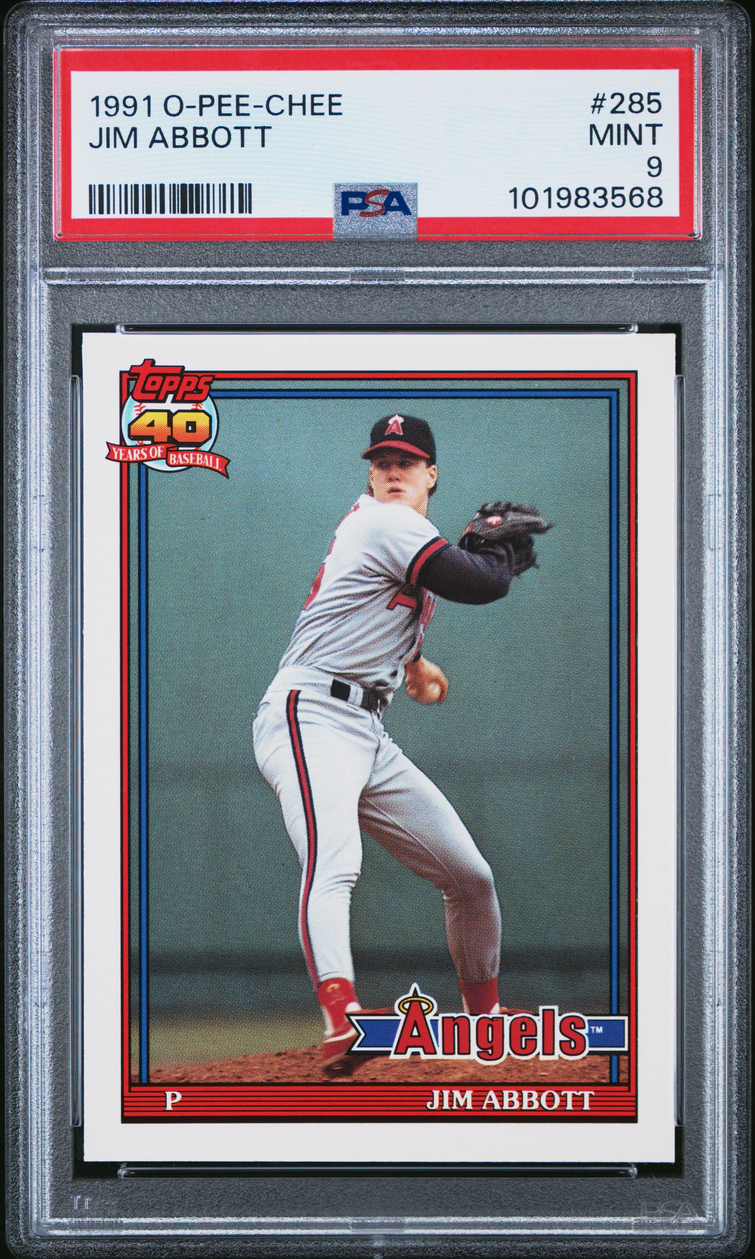 1991 O-PEE-CHEE JIM ABBOTT #285 GRADED PSA 9 MINT ANGELS