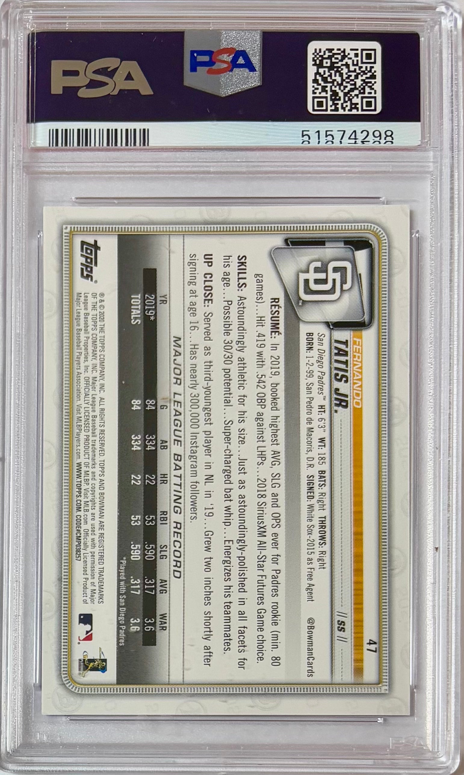 2020 Bowman Fernando Tatis Jr. #47 Purple Parallel /250 Graded PSA 9 Mint! Rare Padres