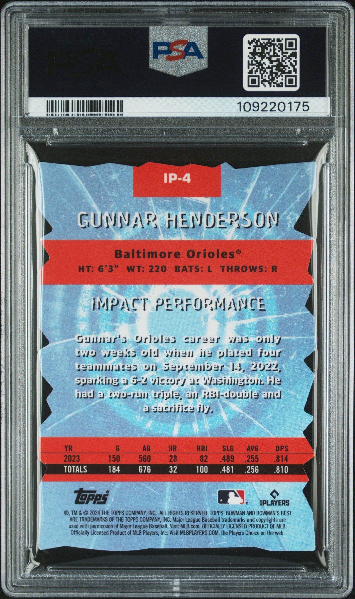 2024 BOWMAN'S BEST IMPACT PLAYERS GUNNAR HENDERSON IP4 PSA 10 GEM MINT *POP3