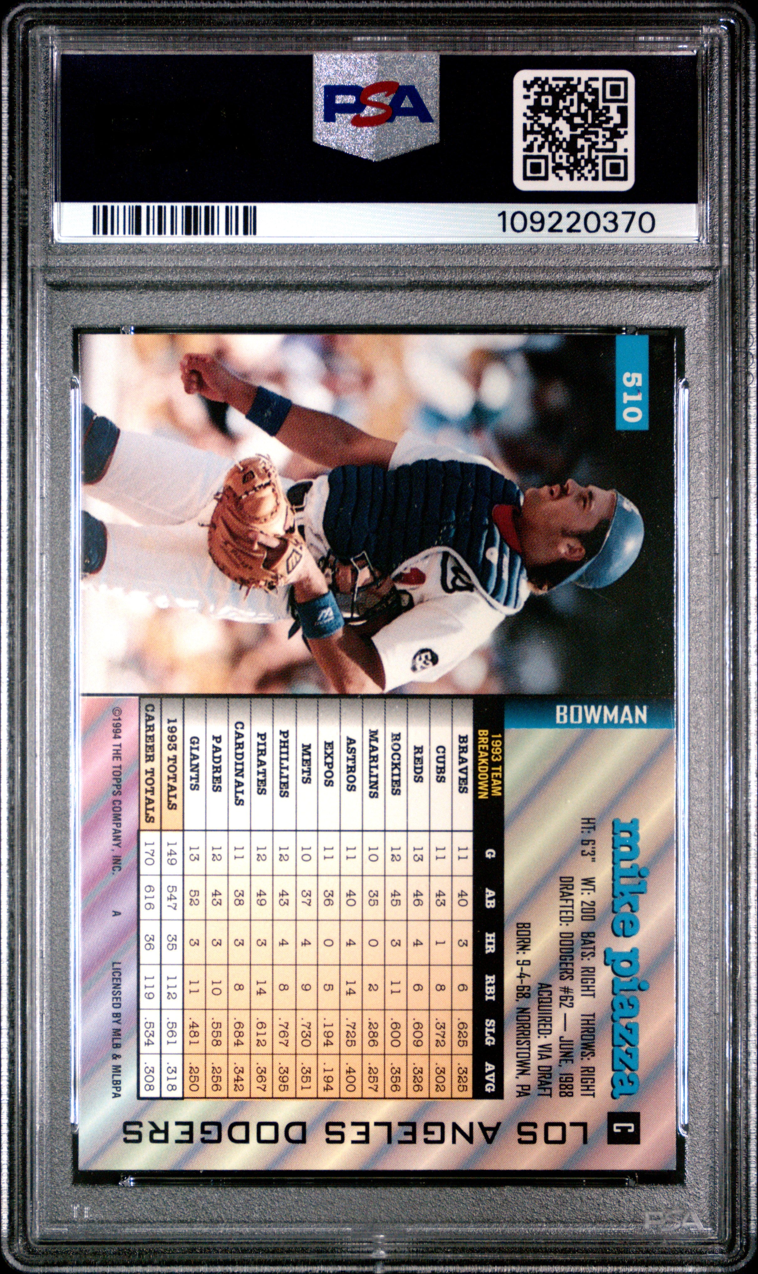 1994 BOWMAN MIKE PIAZZA #510 GRADED PSA 9 MINT DODGERS HOF RARE LOW POP
