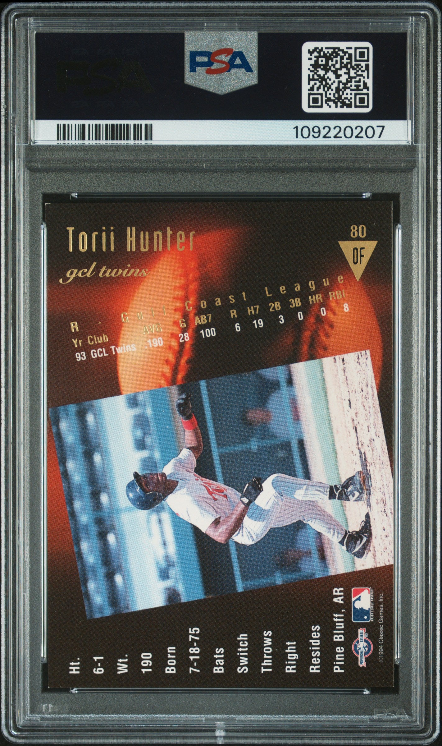 1994 CLASSIC BEST GOLD TORII HUNTER #80 GRADED PSA 8 NM-MT
