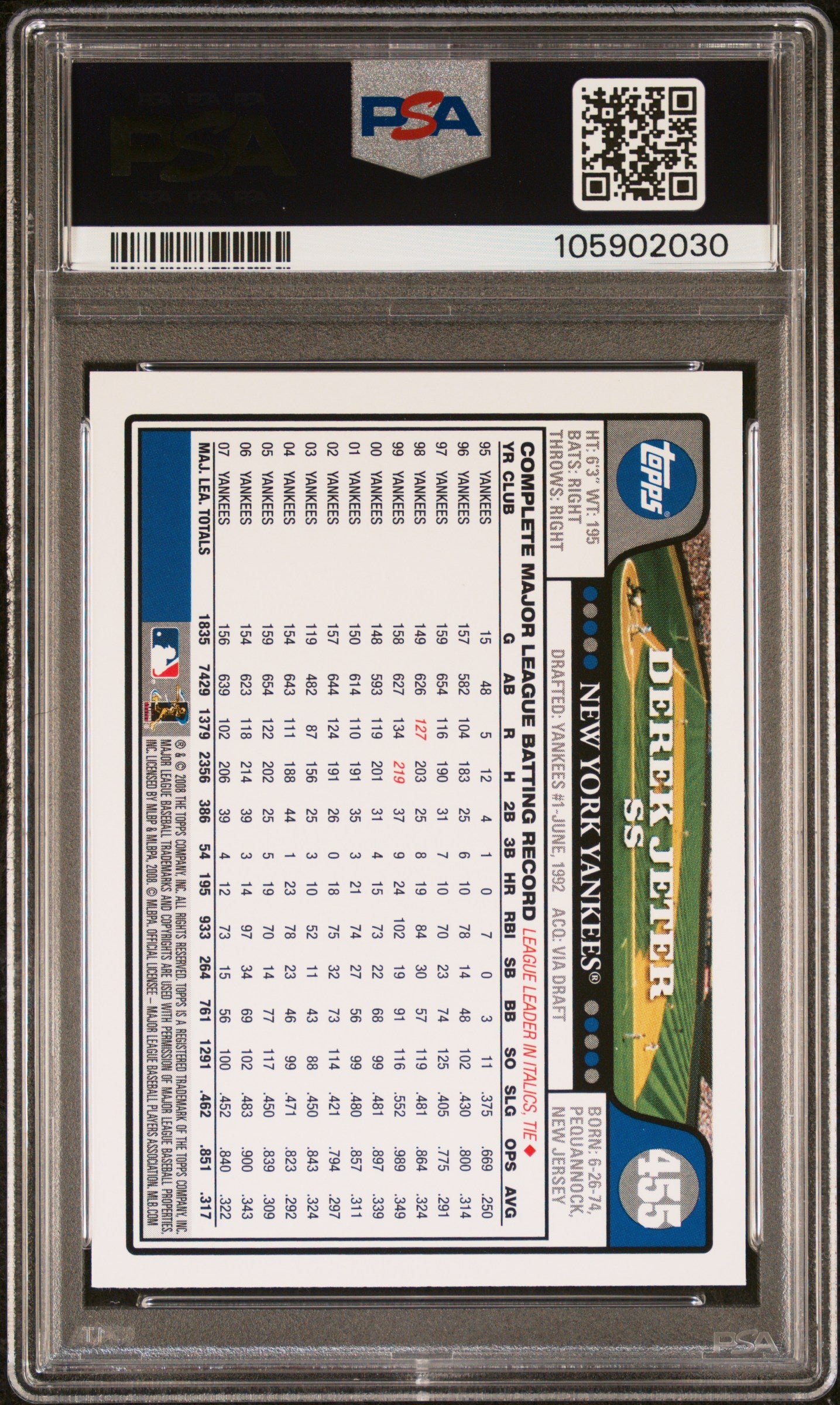 2008 Topps Derek Jeter #455 Graded PSA 9 Mint Rare Yankees HOF!