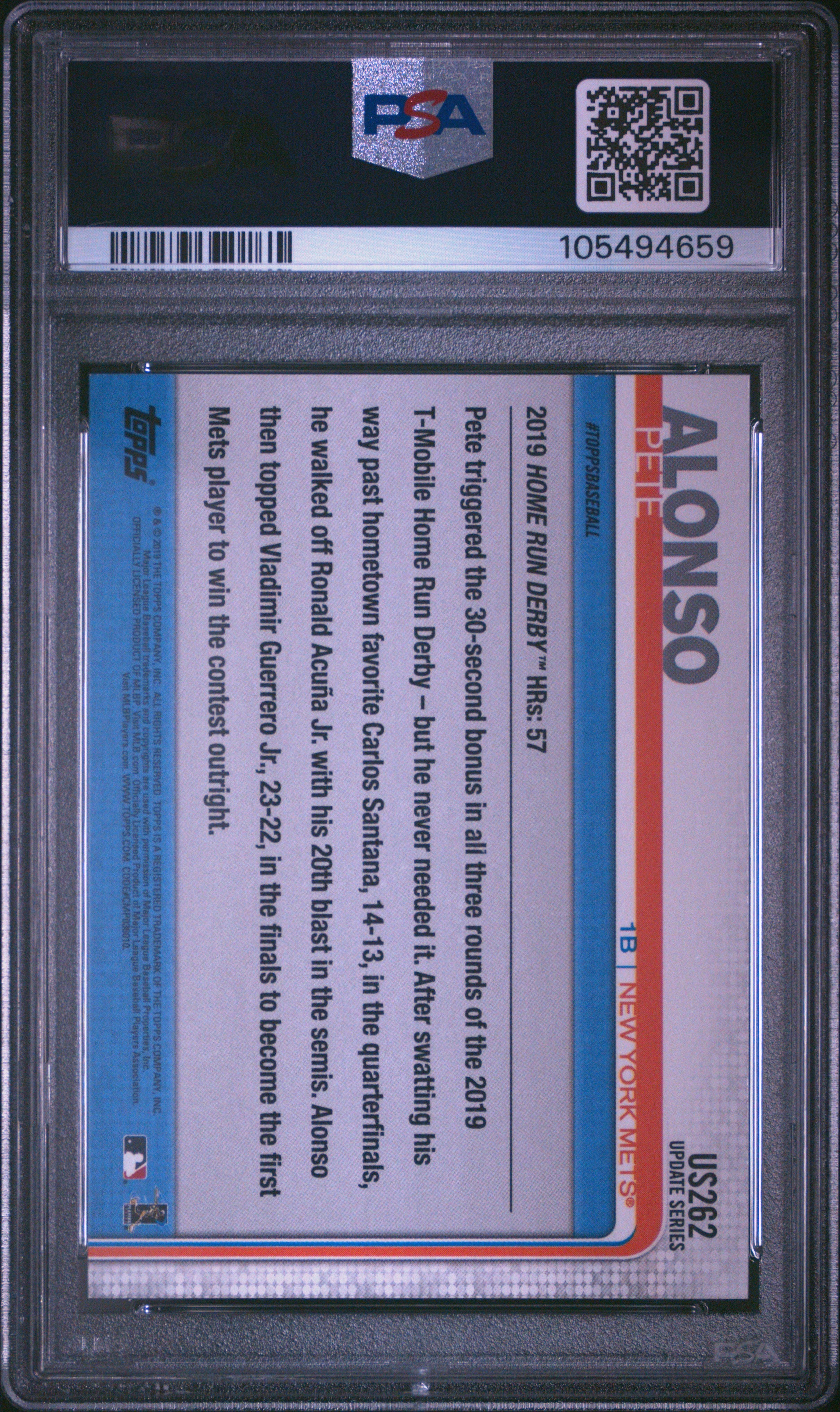 2019 Topps Update Pete Alonso #US262 HR Derby Rookie Card RC Graded PSA 9 Mint Sharp! Mets