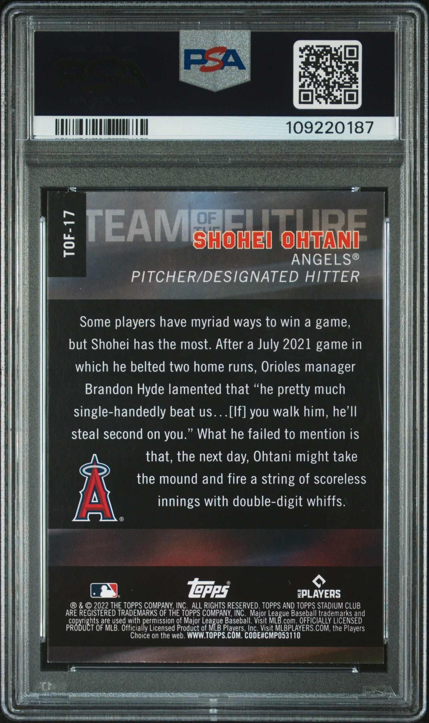 2022 TOPPS STADIUM CLUB TEAM OF THE FUTURE SHOHEI OHTANI #TOF17 GRADED PSA 8 NM-MT