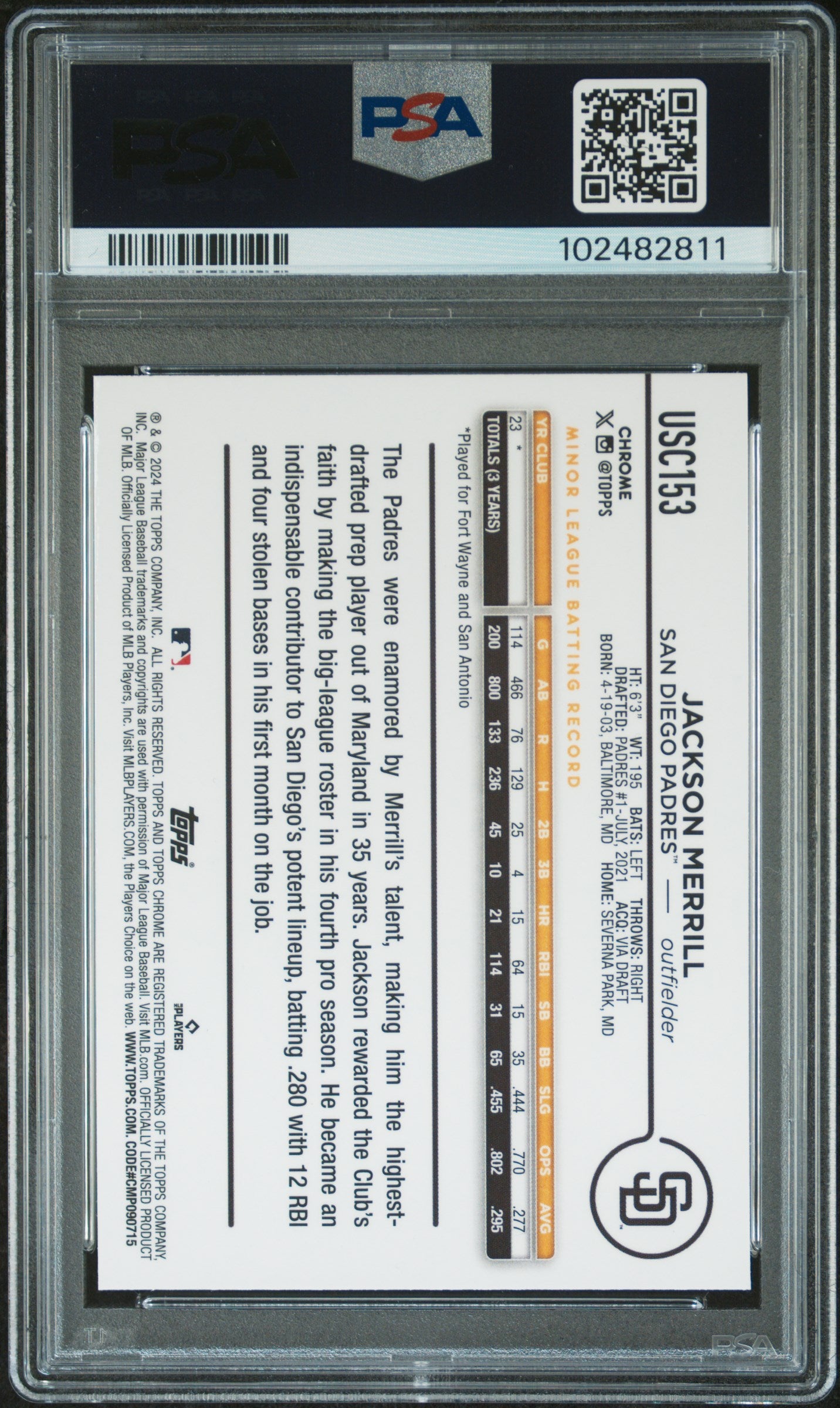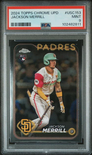 2024 TOPPS CHROME UPDATE JACKSON MERRILL #USC153 ROOKIE CARD RC PSA 9 MINT SHARP