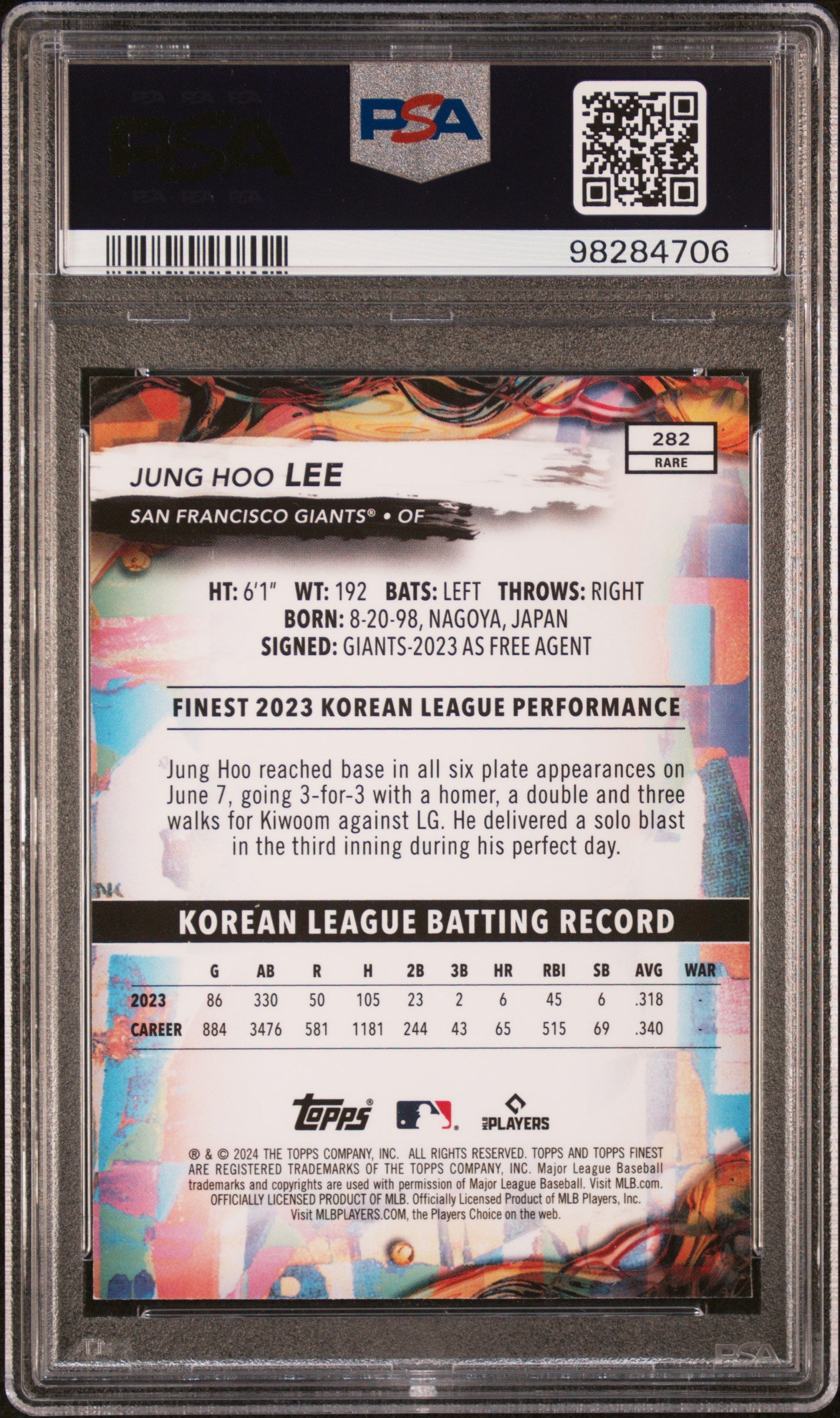 2024 TOPPS FINEST JUNG HOO LEE #282 RARE ROOKIE RC GRADED PSA 9 MINT LOW POP!