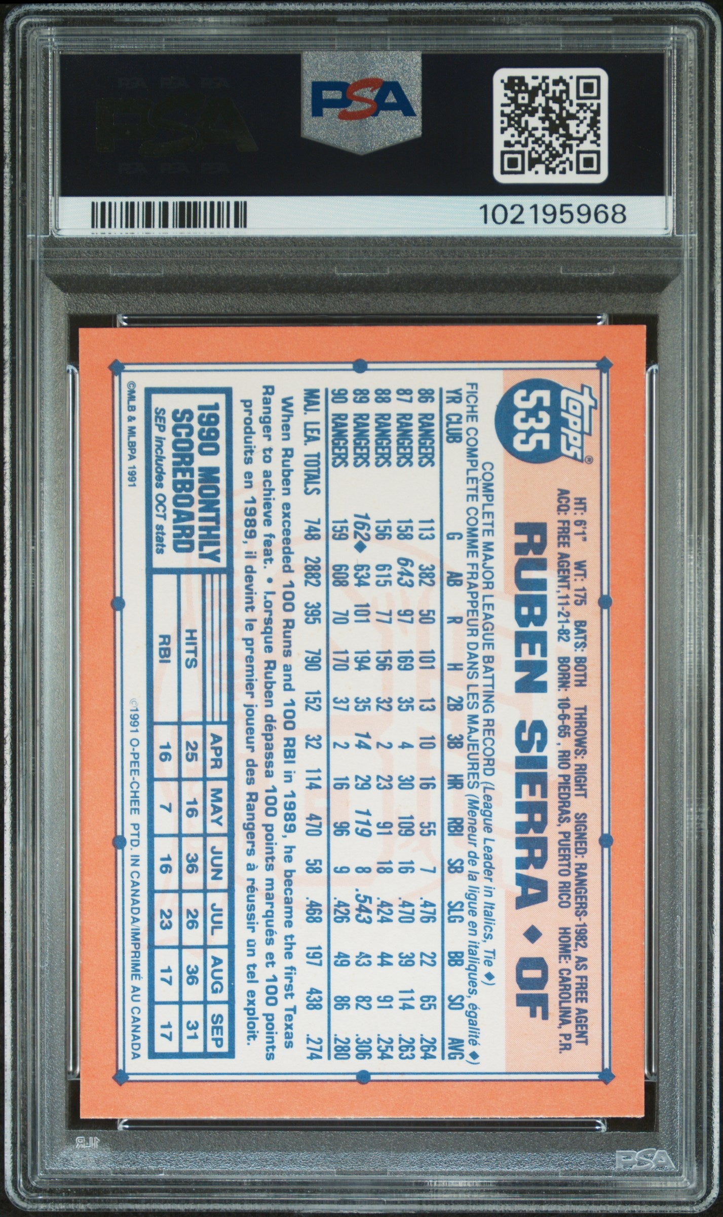 1991 O-PEE-CHEE RUBEN SIERRA #535 GRADED PSA 10 GEM MINT RANGERS **POP 1**