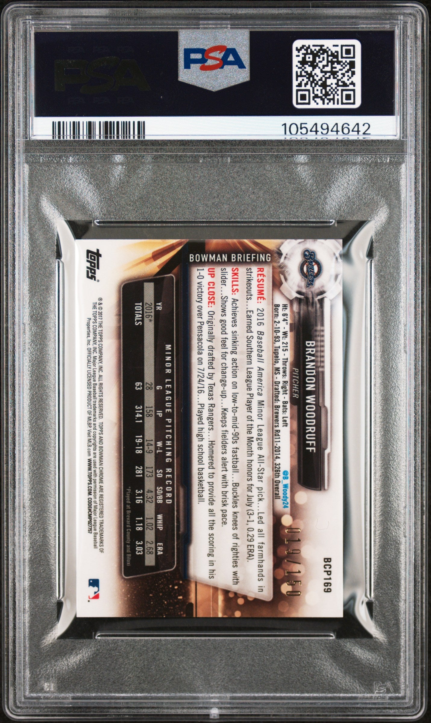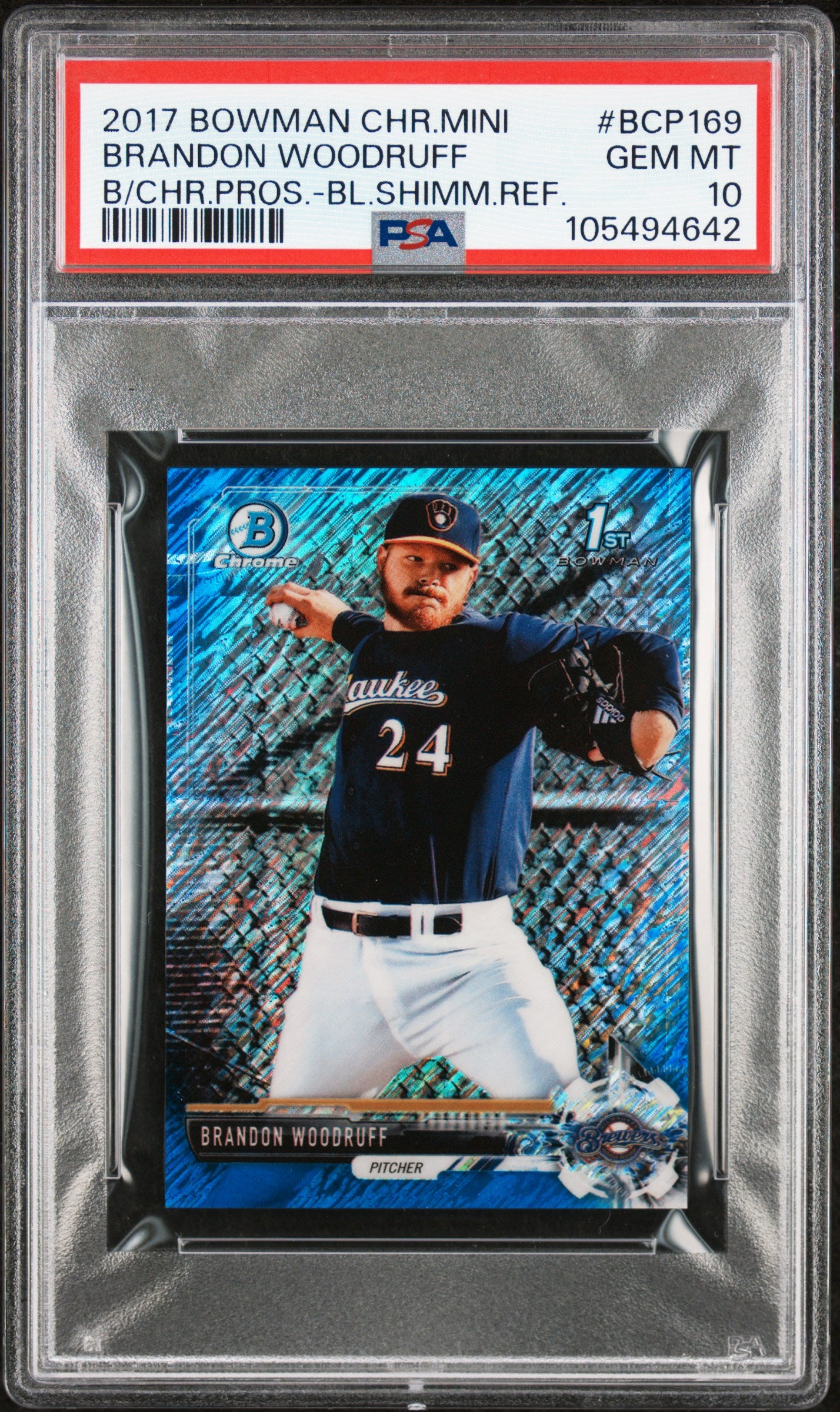 Home Shop Low Population 2017 Bowman Chrome Mini Brandon Woodruff #BCP169 Blue Shimmer Refractor /150 PSA 10 *Pop 1* 1st Bowman