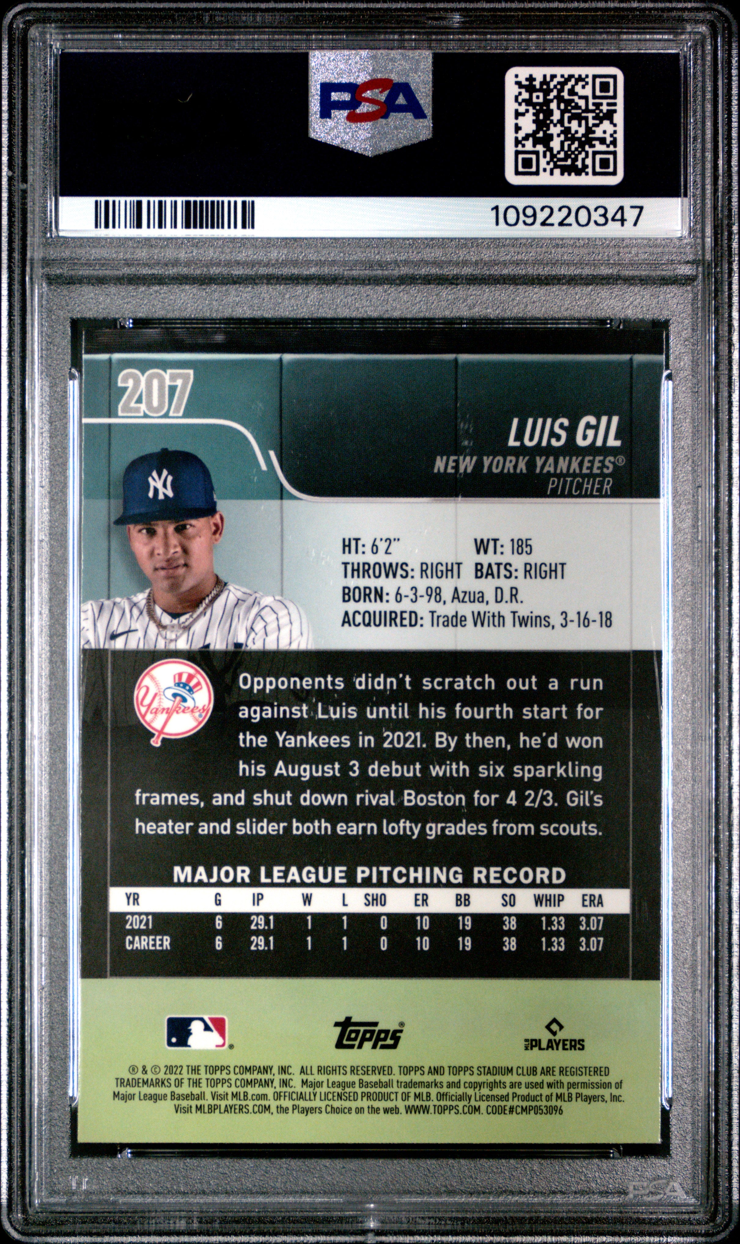 Home Shop Low Population 2022 TOPPS STADIUM CLUB LUIS GIL #207 CHROME PARALLEL ROOKIE RC PSA 10 GEM *POP 1*