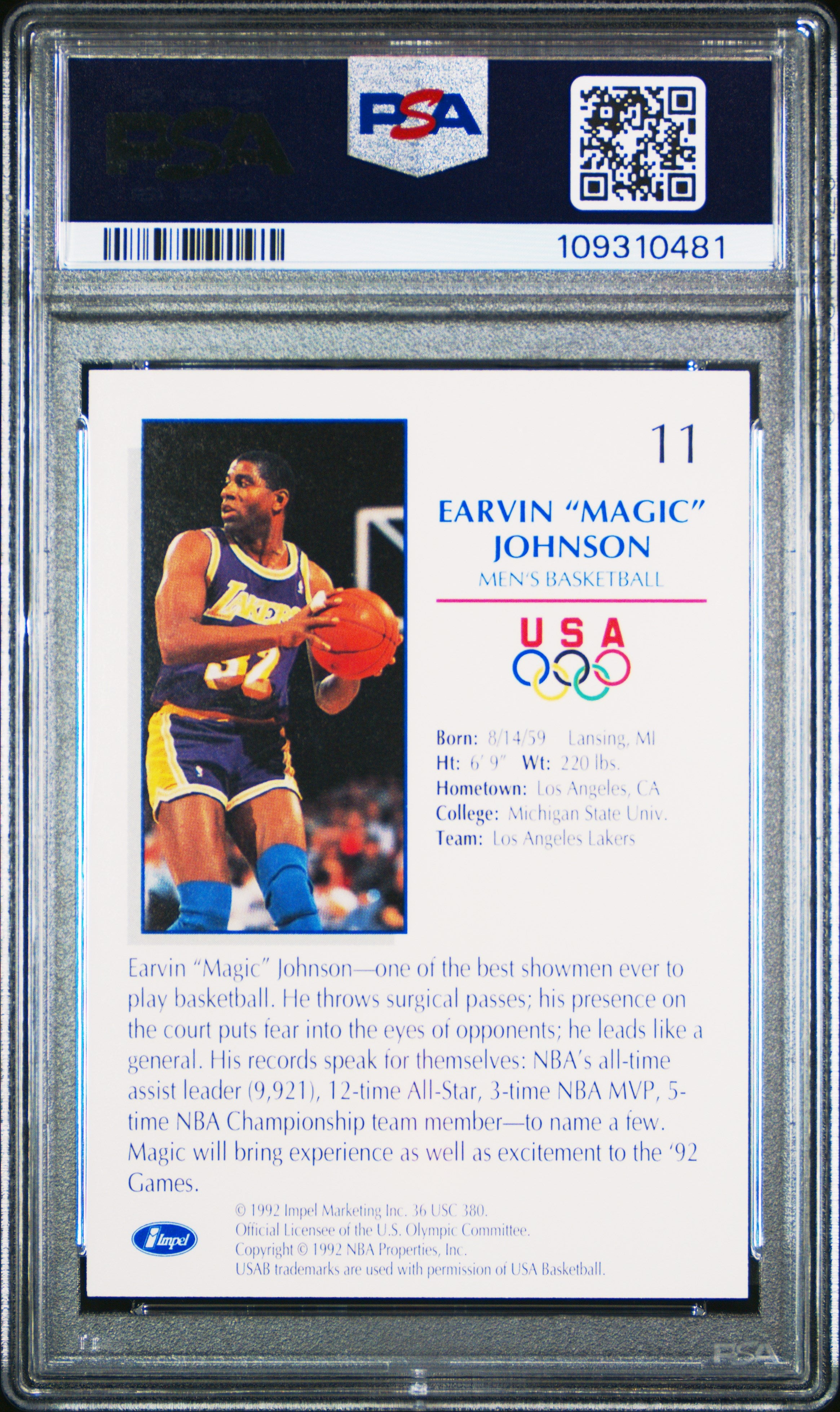 Home Shop Olympics 1992 IMPEL OLYMPICARDS EARVIN MAGIC JOHNSON #11 GRADED PSA 10 GEM MINT DREAM TEAM USA