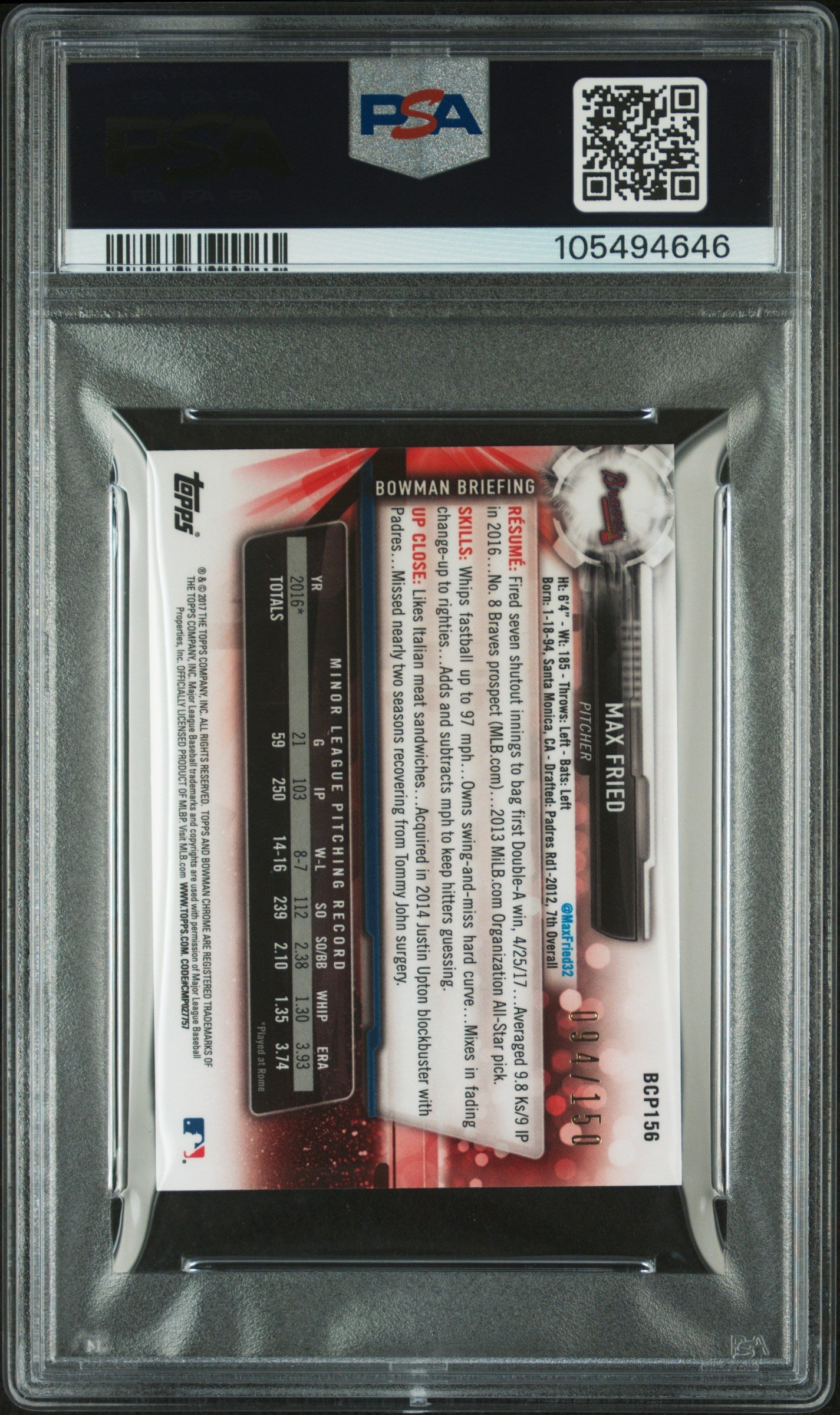 Home Shop Refractor Cards 2017 Bowman Chrome Mini Max Fried #BCP156 Blue Shimmer Refractor /150 PSA 9 Rare!