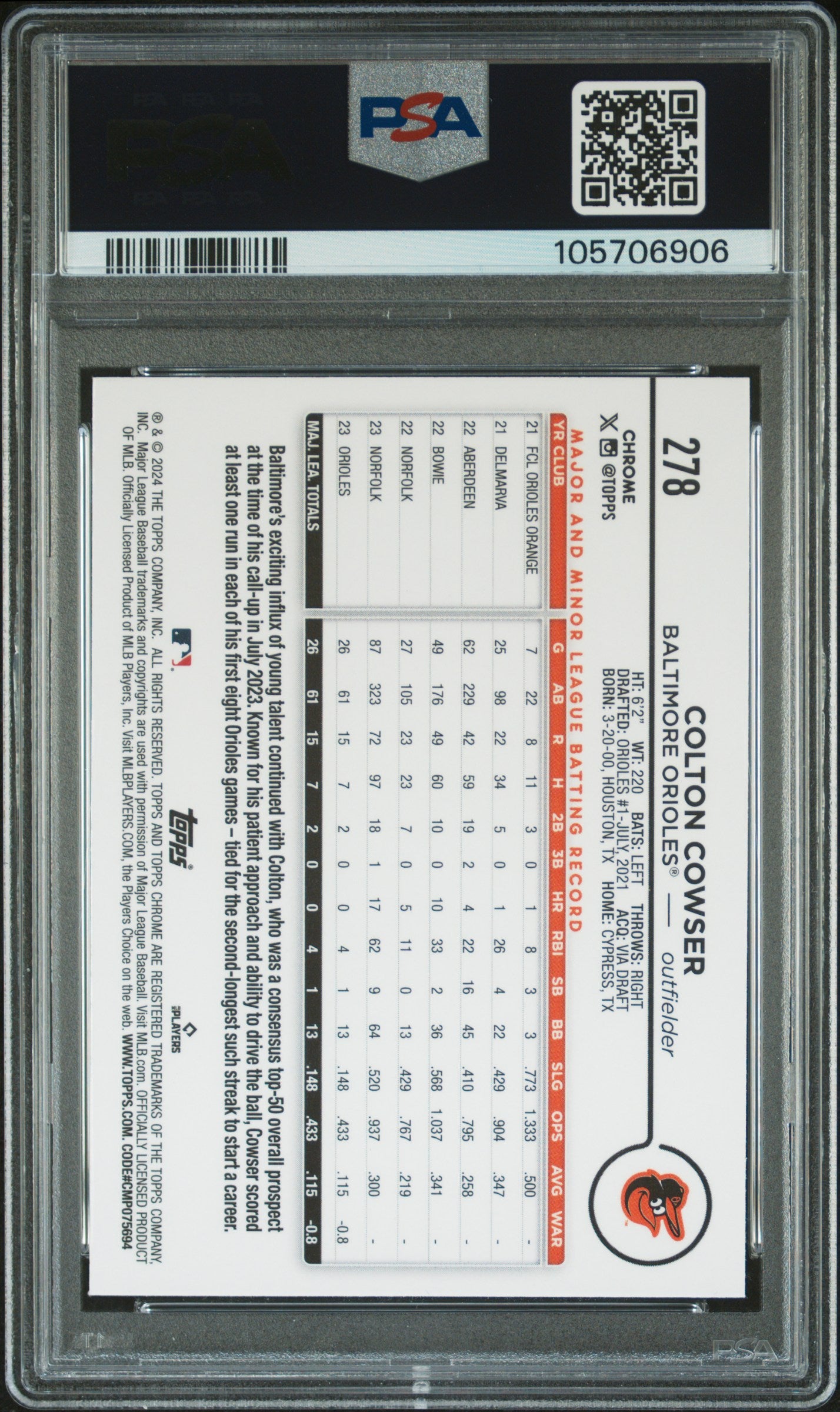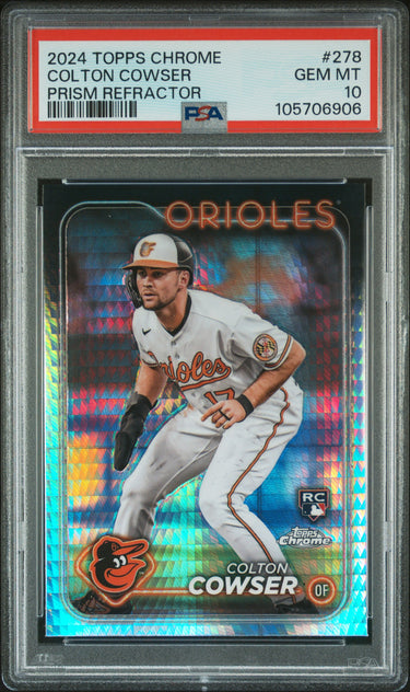 2024 TOPPS CHROME COLTON COWSER 278 PRISM REFRACTOR ROOKIE RC PSA 10 GEM MINT