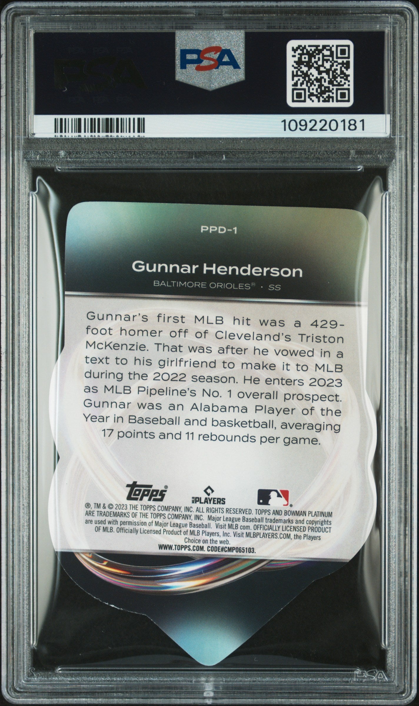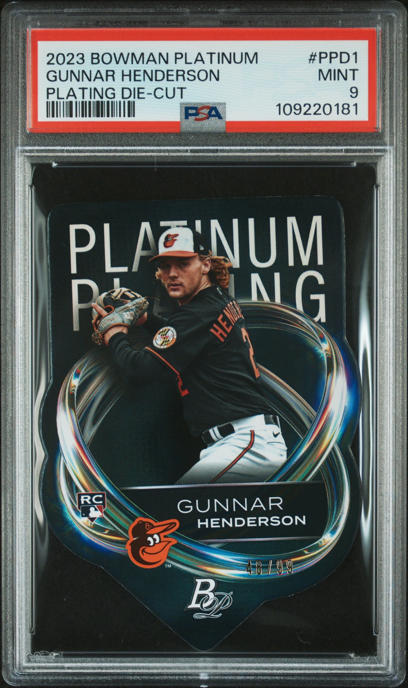 2023 BOWMAN PLATINUM PLATING GUNNAR HENDERSON PPD1 DIE-CUT SSP RC /99 PSA 9 MINT RARE!!
