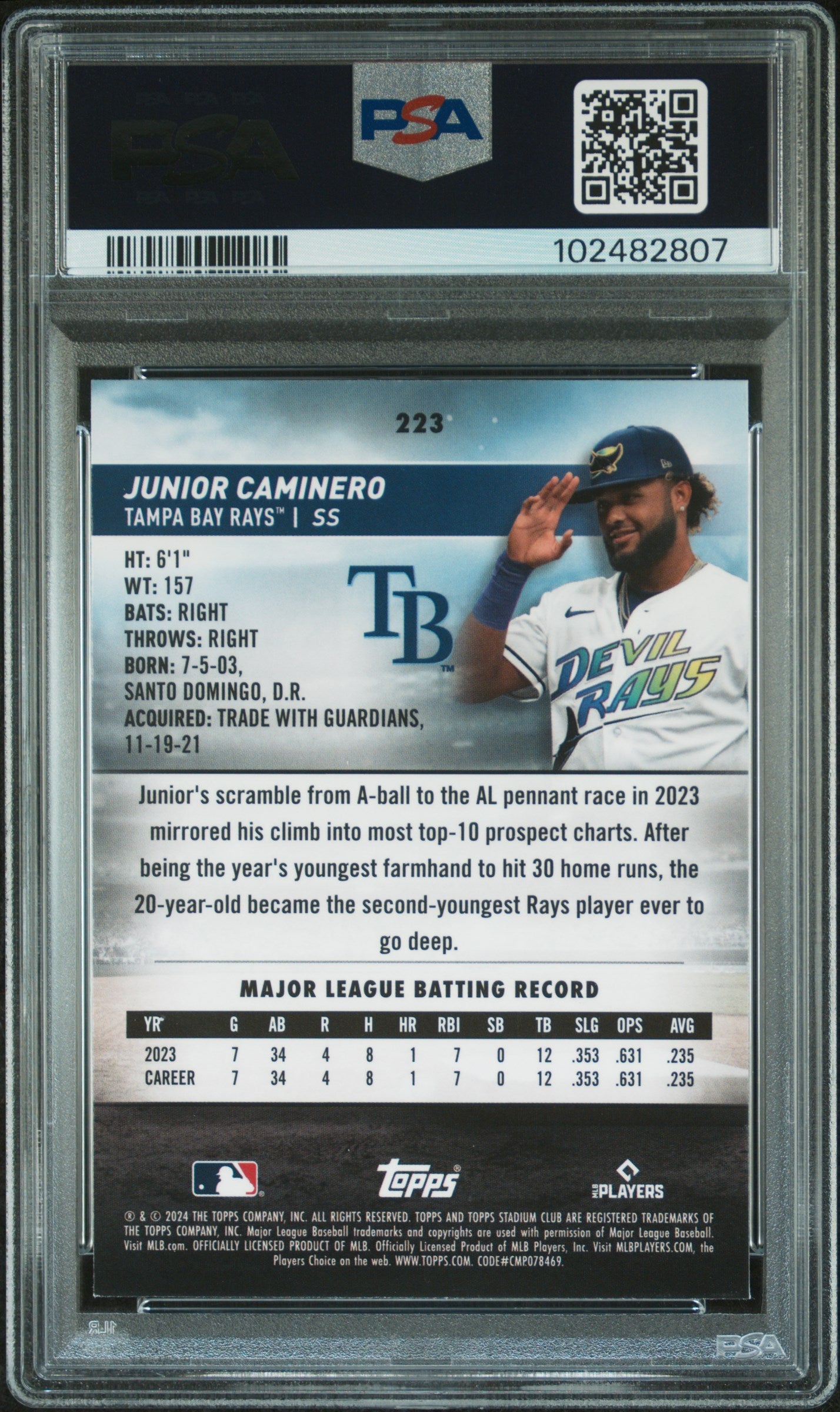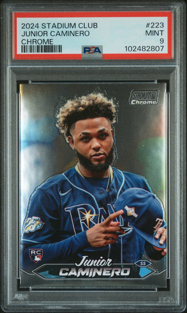Home Shop Rookie Cards 2024 TOPPS STADIUM CLUB JUNIOR CAMINERO 223 CHROME ROOKIE RC PSA 9 MINT RARE
