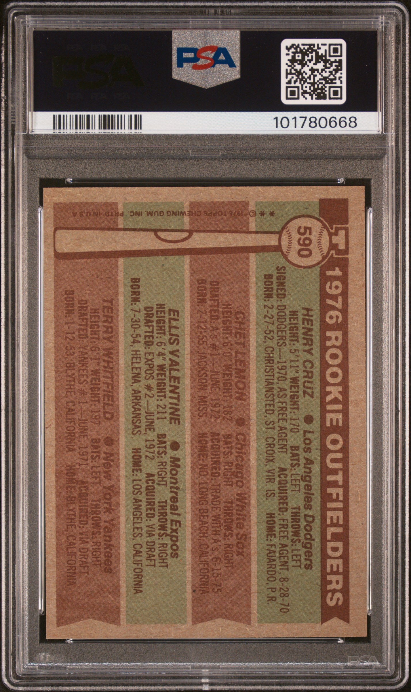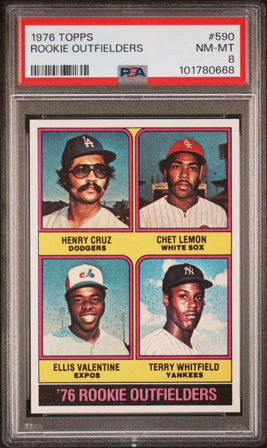 1976 TOPPS ROOKIE OUTFIELDERS CHET LEMON RC #590 GRADED PSA 8 NM-MINT RIP