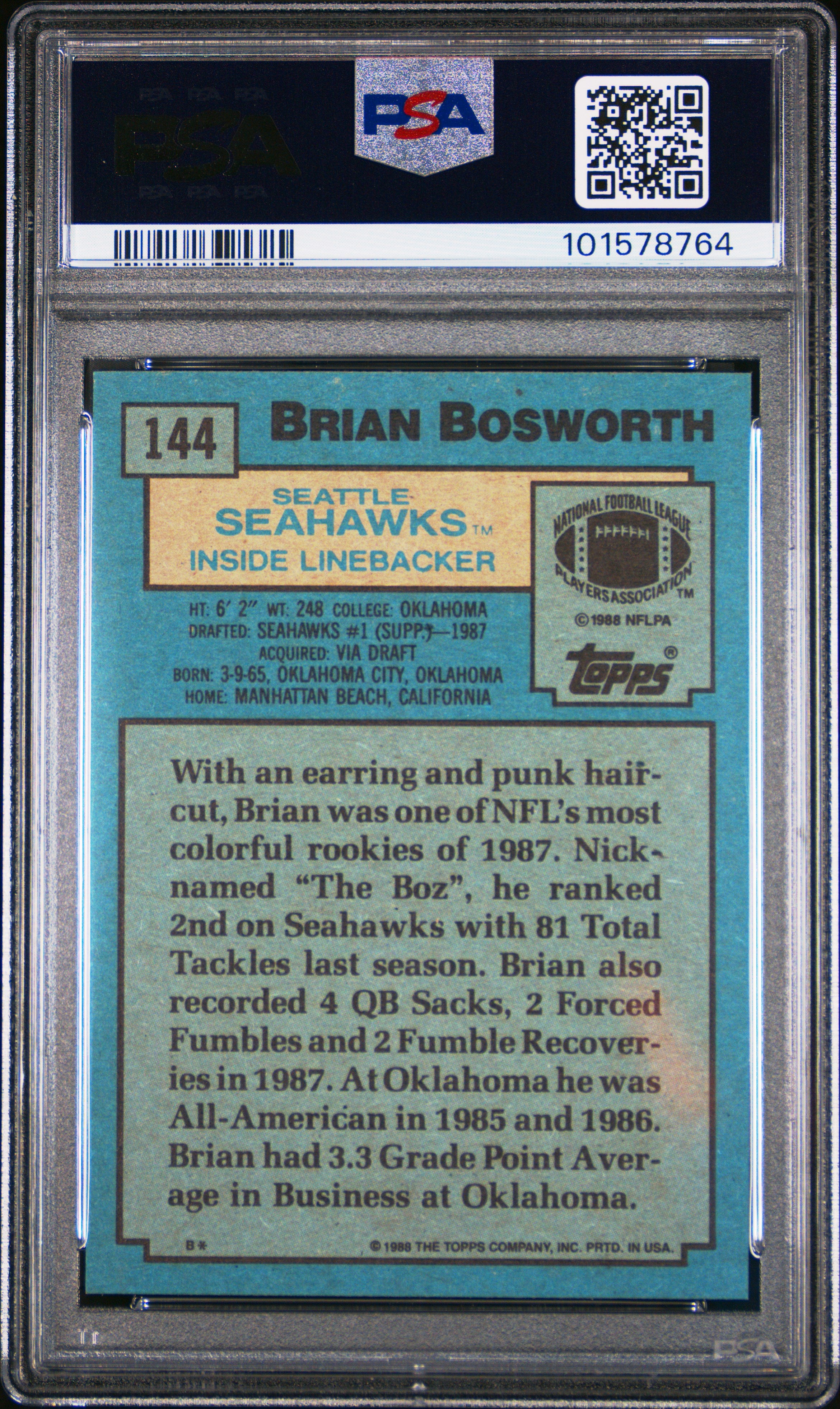 1988 TOPPS FOOTBALL BRIAN BOSWORTH ROOKIE CARD RC #144 GRADED PSA 9 MINT SHARP