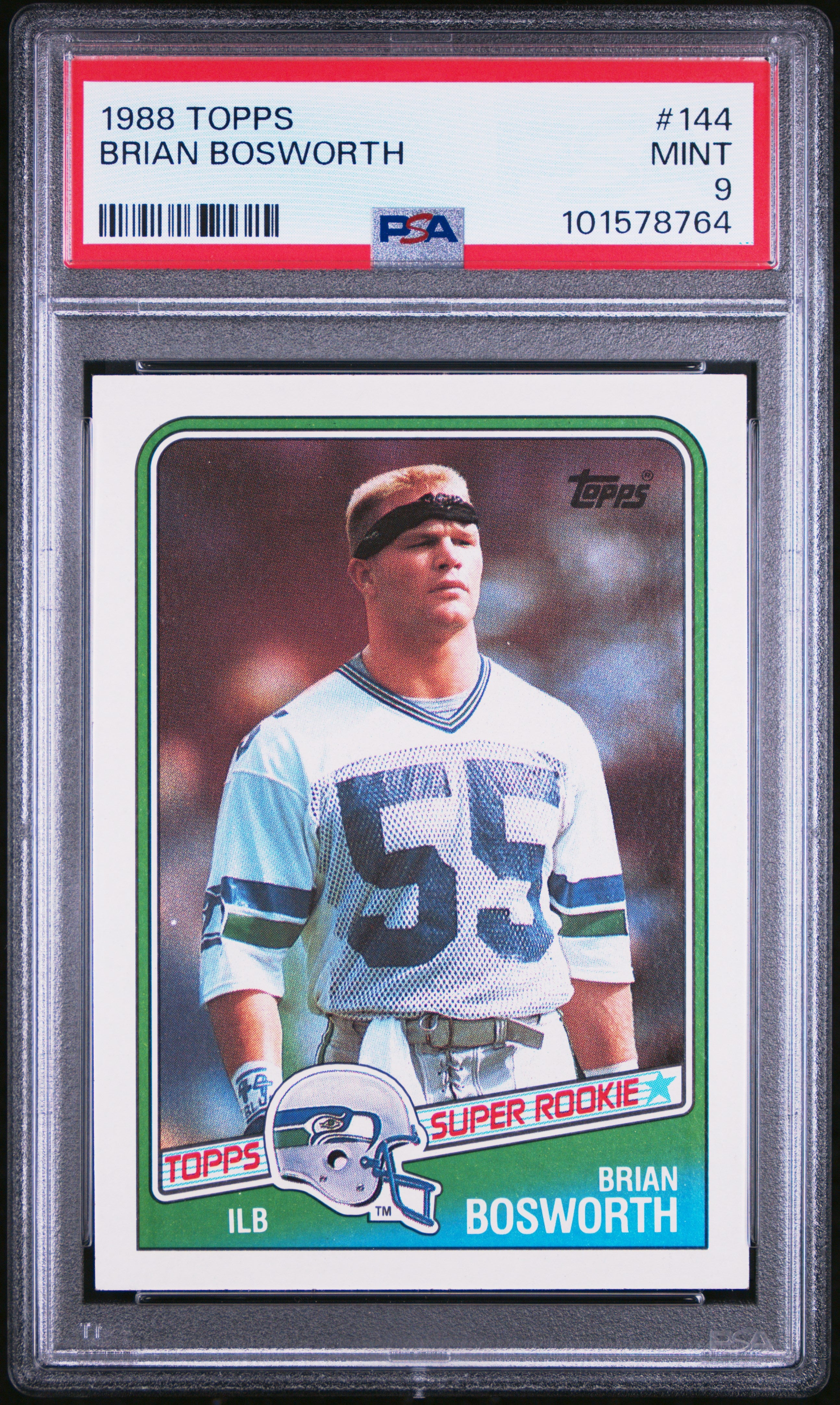 Home 1988 TOPPS FOOTBALL BRIAN BOSWORTH ROOKIE CARD RC #144 GRADED PSA 9 MINT SHARP