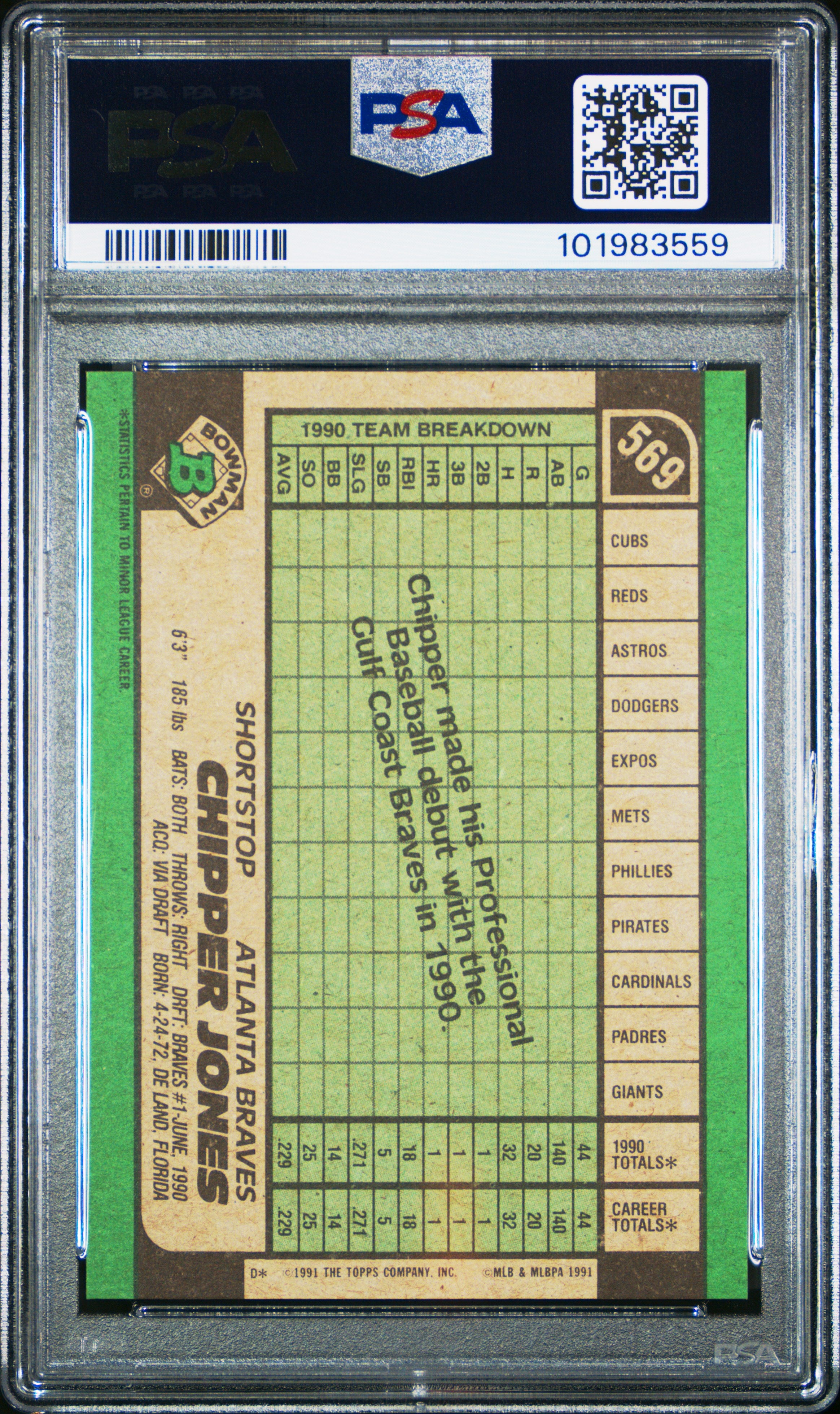1991 BOWMAN CHIPPER JONES #569 ROOKIE CARD RC GRADED PSA 10 GEM MINT