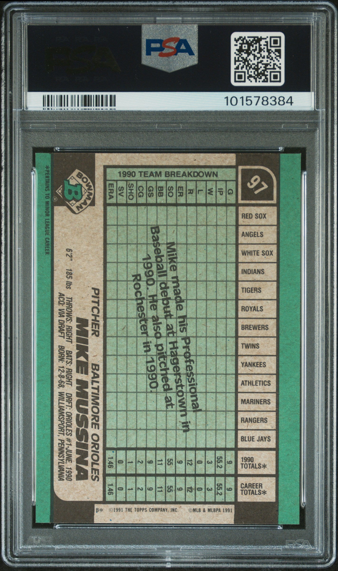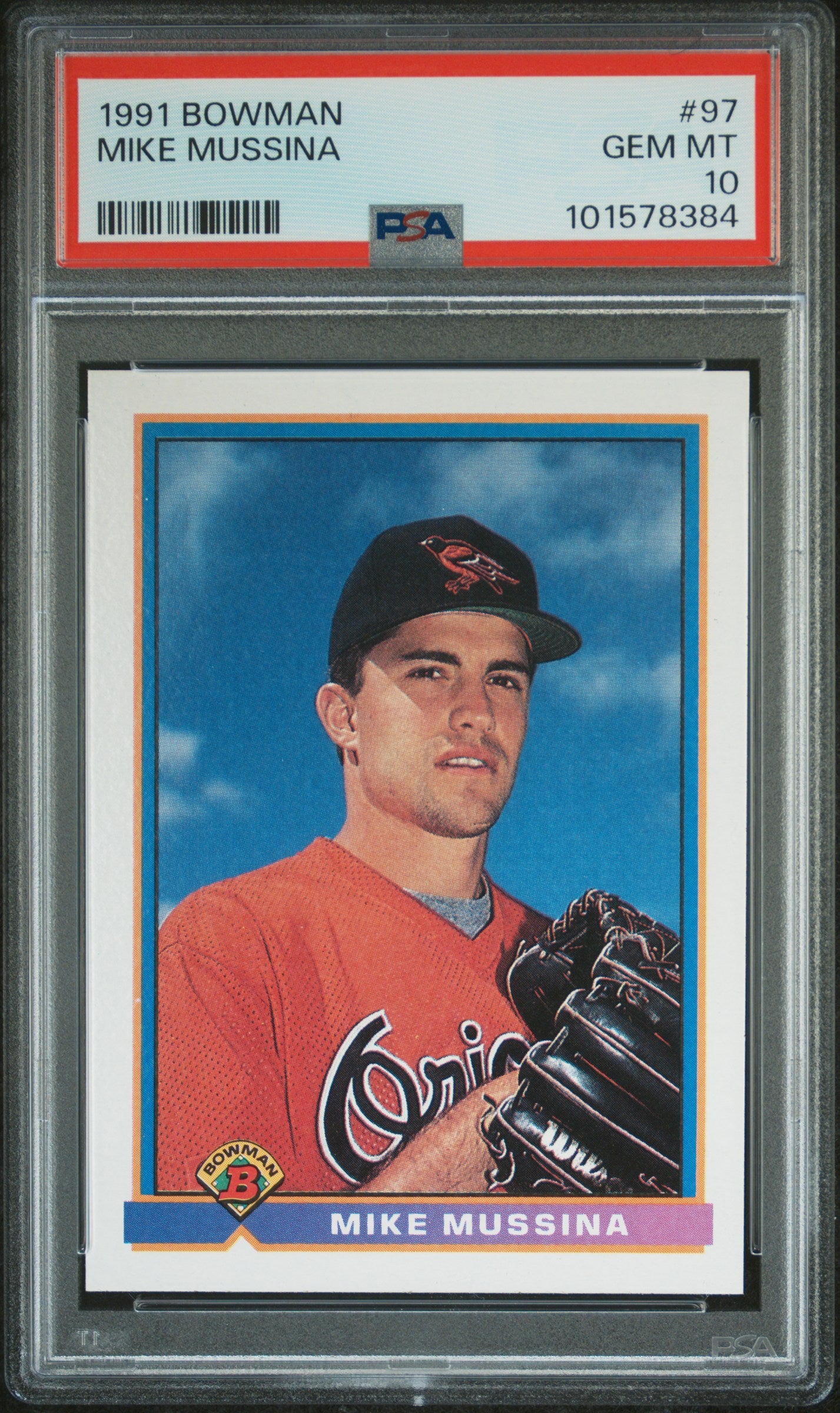 1991 BOWMAN MIKE MUSSINA #97 ROOKIE CARD RC GRADED PSA 10 GEM MINT