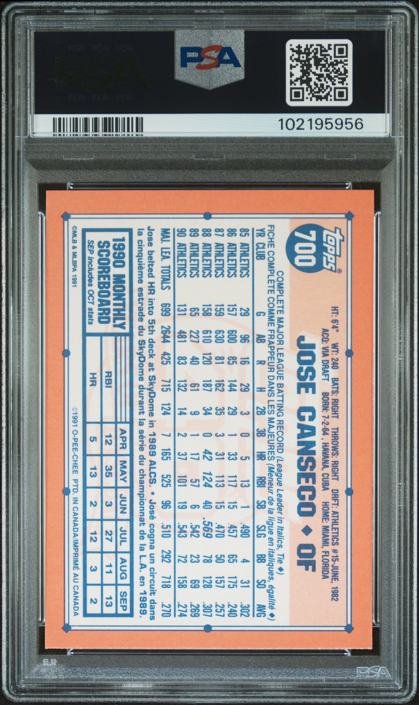 Home 1991 O-PEE-CHEE JOSE CANSECO #700 GRADED PSA 10 GEM MINT RARE LOW POP A's