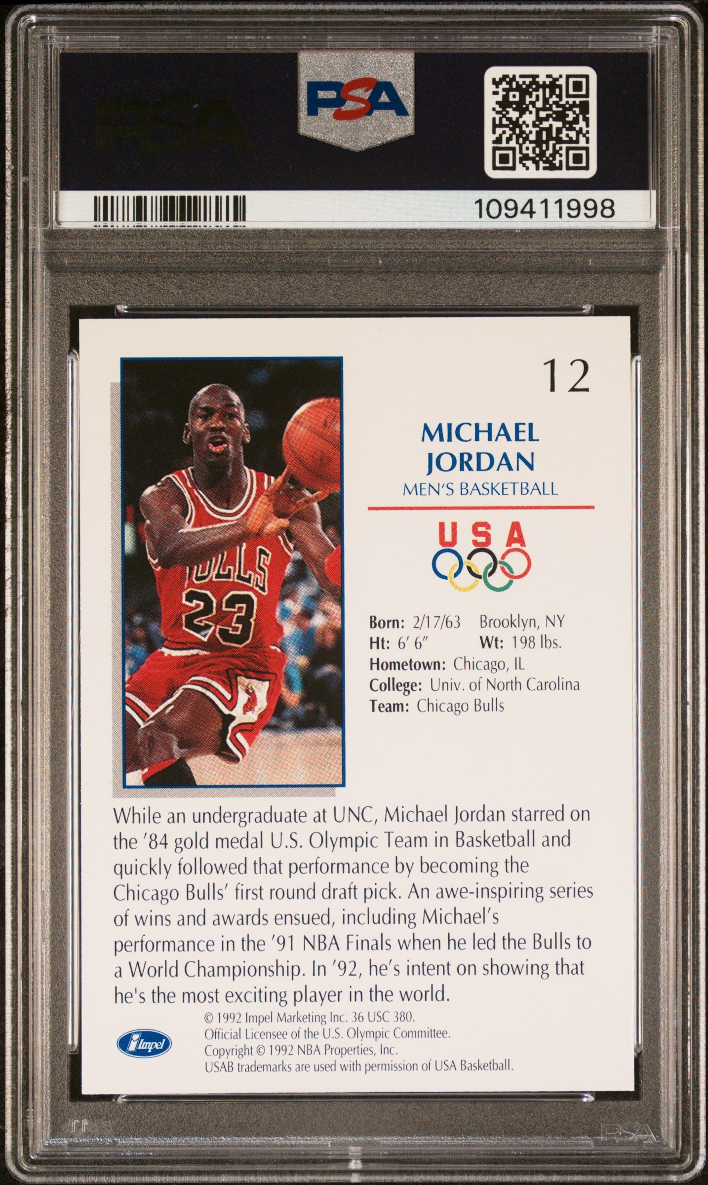 1992 IMPEL OLYMPICARDS MICHAEL JORDAN #12 GRADED PSA 10 GEM MINT DREAM TEAM USA