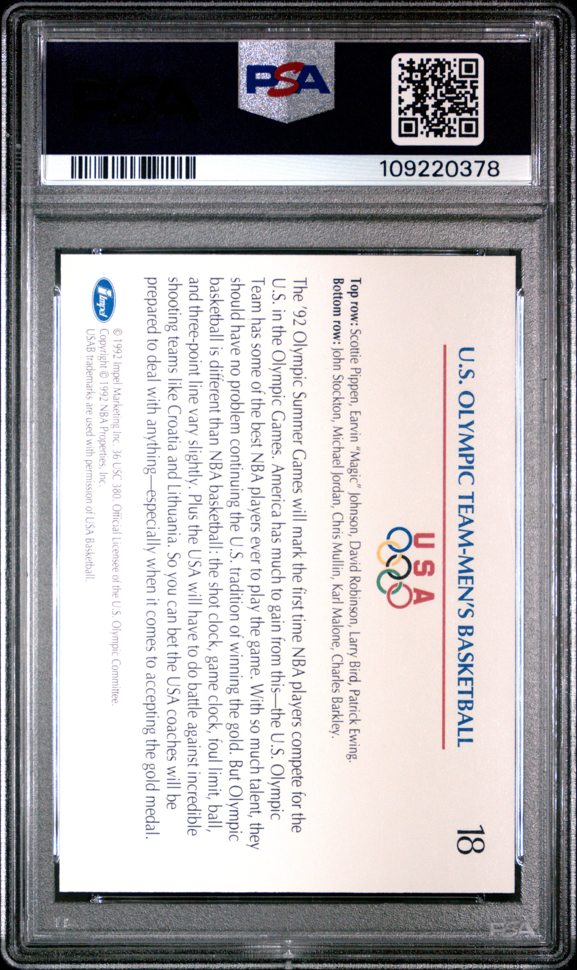 1992 IMPEL OLYMPICARDS U.S. OLYMPIC TEAM #18 GRADED PSA 10 GEM MT