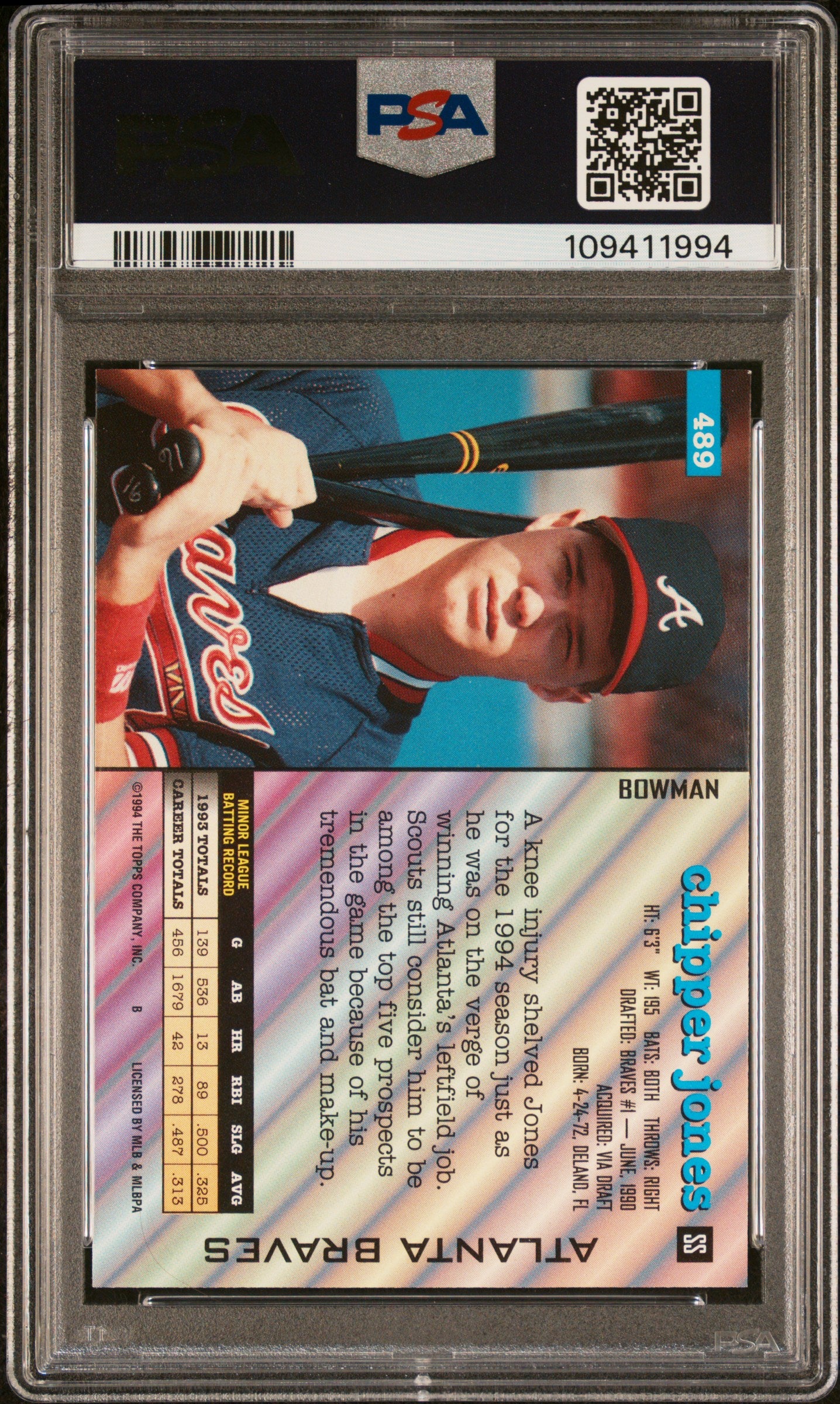 Home 1994 BOWMAN CHIPPER JONES #489 GRADED PSA 9 MINT BRAVES HOF RARE LOW POP