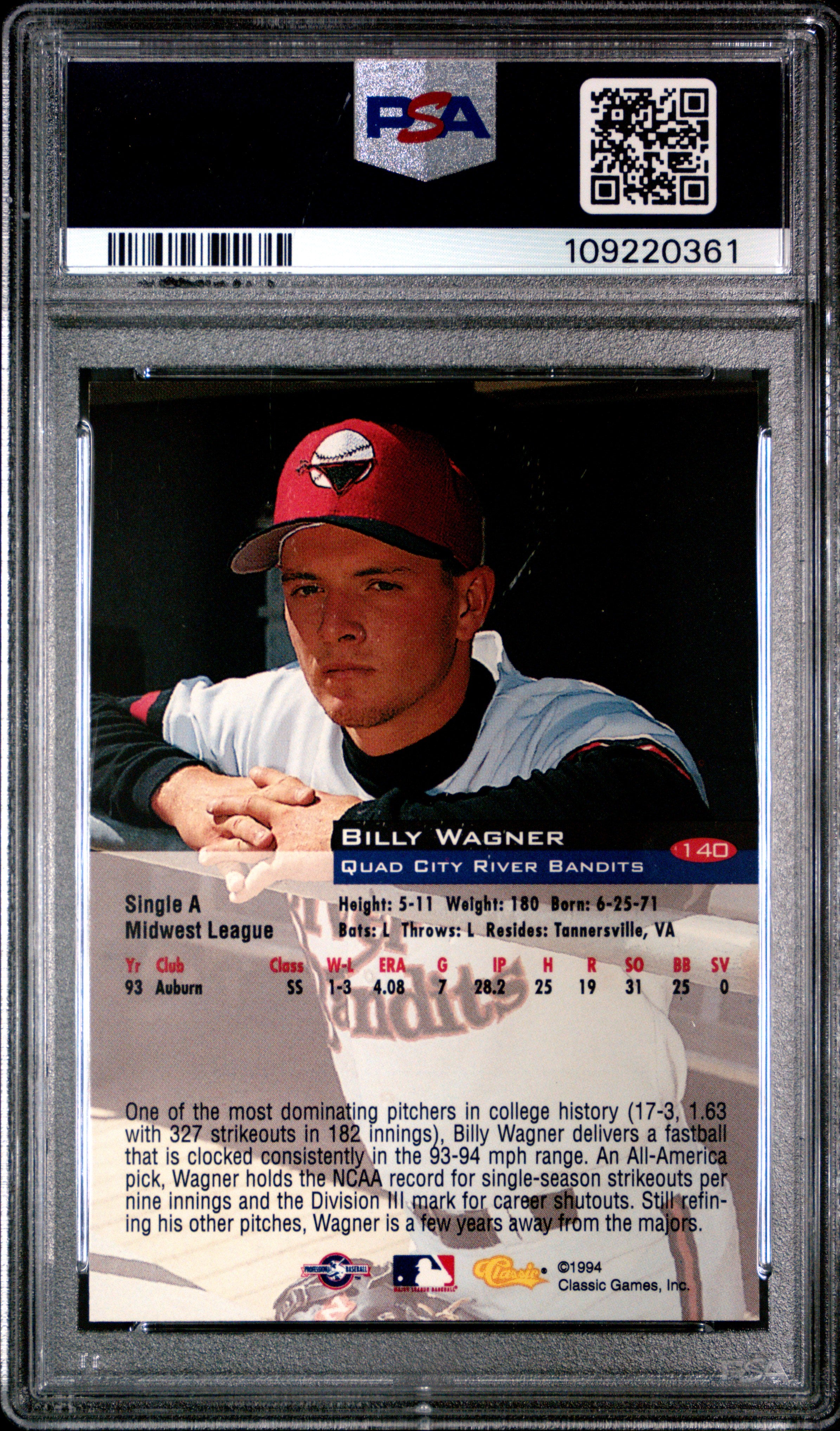 1994 CLASSIC BILLY WAGNER #140 GRADED PSA 10 GEM MT