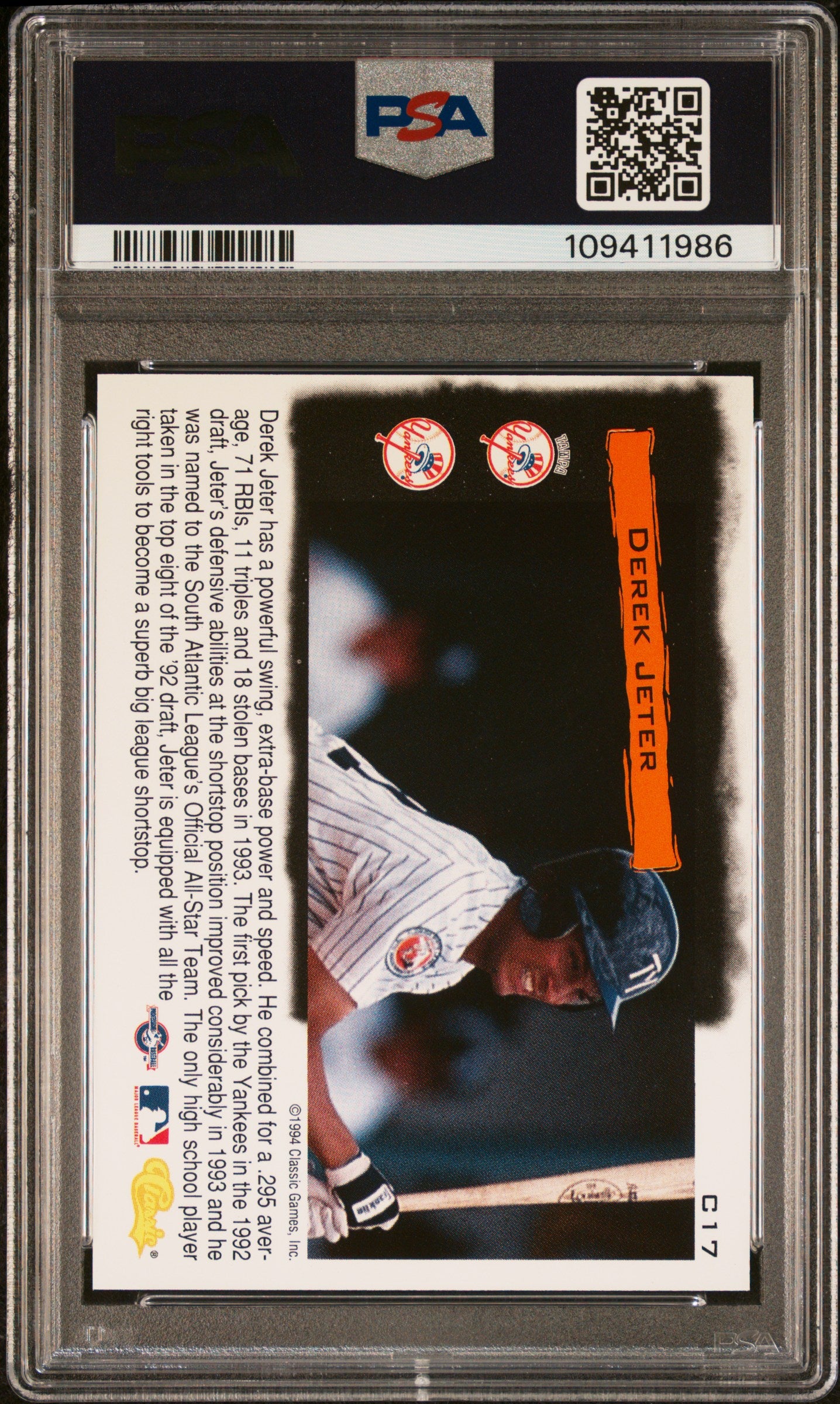 1994 CLASSIC CREAM OF THE CROP DEREK JETER #C17 GRADED PSA 9 MINT YANKEES