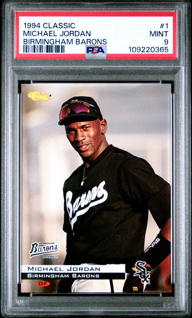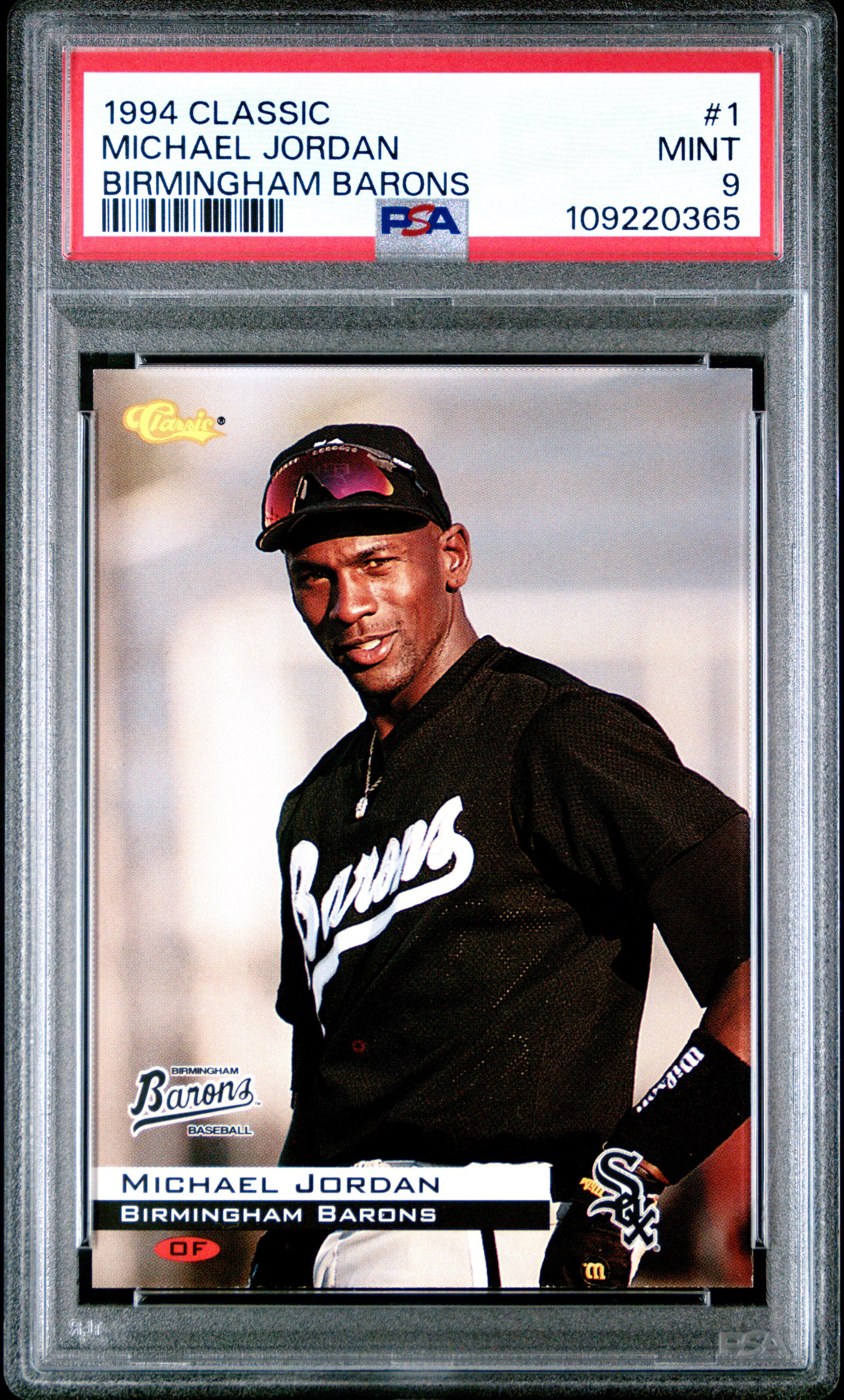 A beautiful and super sharp PSA 9 baseball rookie card of the GREATEST of ALL TIME - Michael Jordan - from the time when he took a break from basketball and played professional baseball! Iconic card!