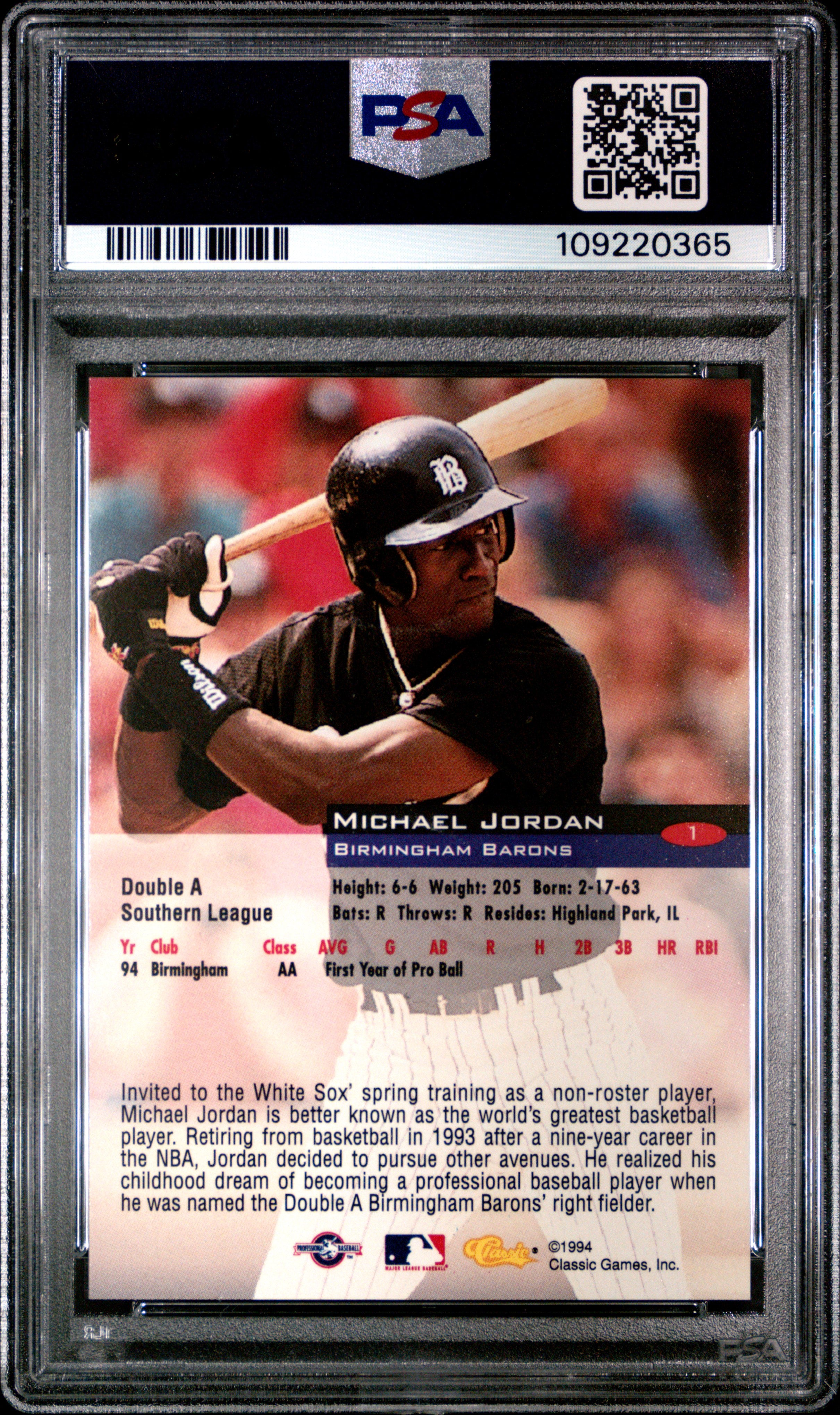 Home 1994 CLASSIC MICHAEL JORDAN #1 MINOR LEAGUE ROOKIE CARD RC GRADED PSA 9 MINT!