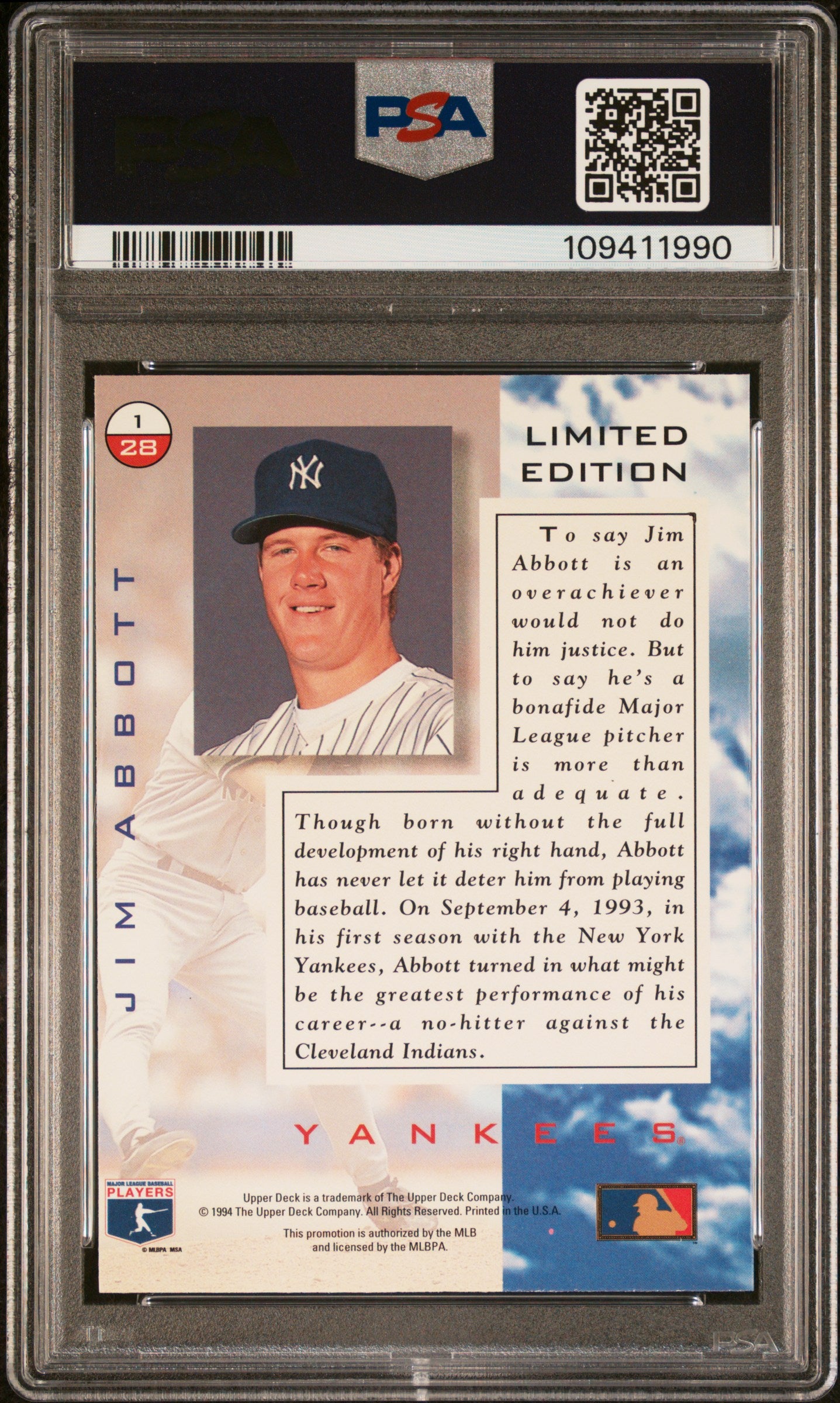 1994 Denny's Grand Slam Holograms Jim Abbott #1 Graded PSA 9 Mint Pop 5 No 10s!
