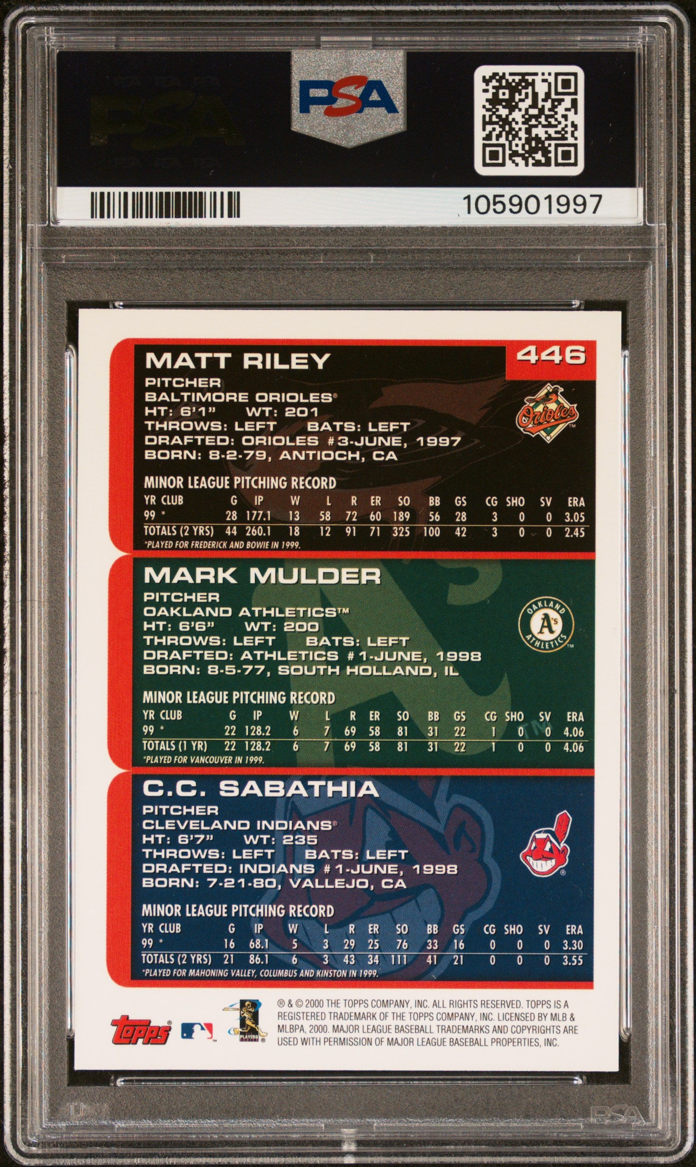 2000 TOPPS CC C.C. Sabathia Rookie RC 446 Graded PSA 9 Mint Yankees HOF!