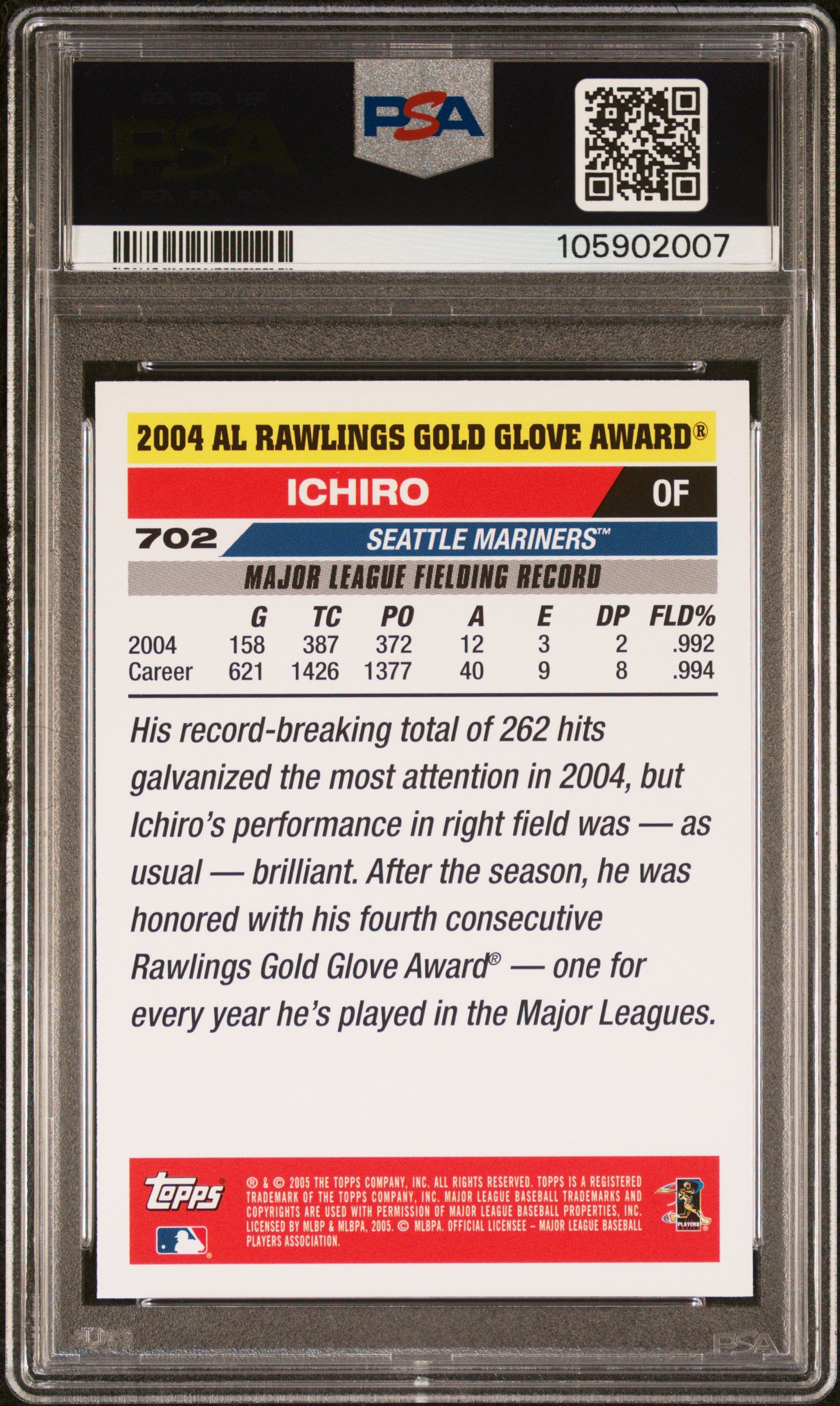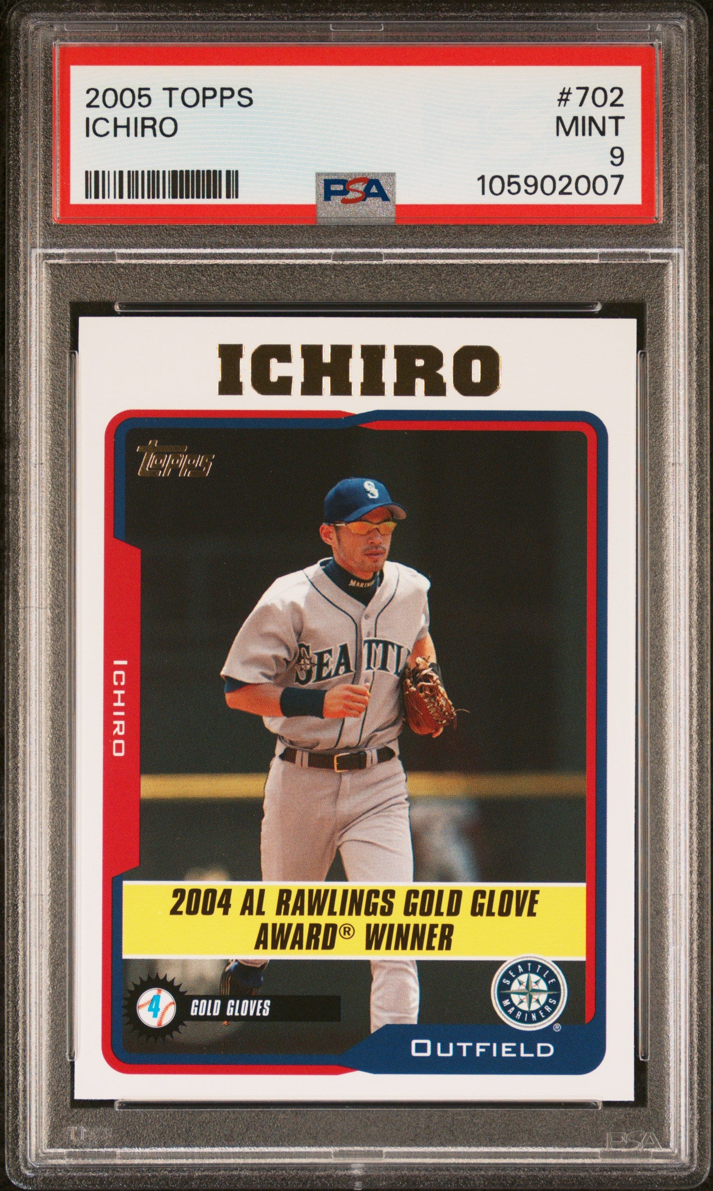 2005 Topps Ichiro Gold Glove Winner #702 PSA 9 Mint Rare Mariners HOF!