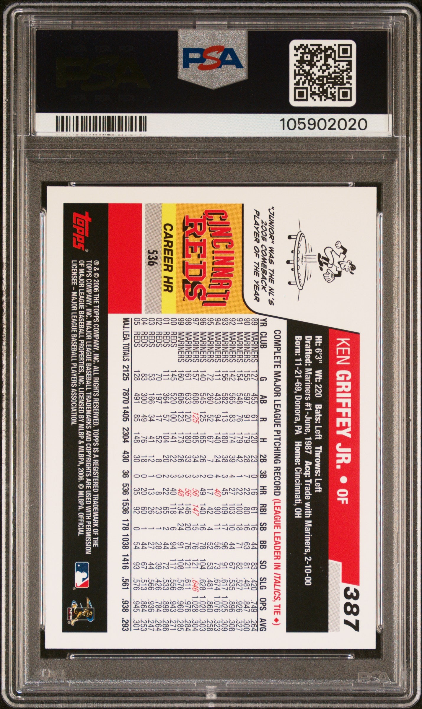 2006 Topps Ken Griffey Jr. #387 Graded PSA 10 Gem Mint Rare Reds HOF!