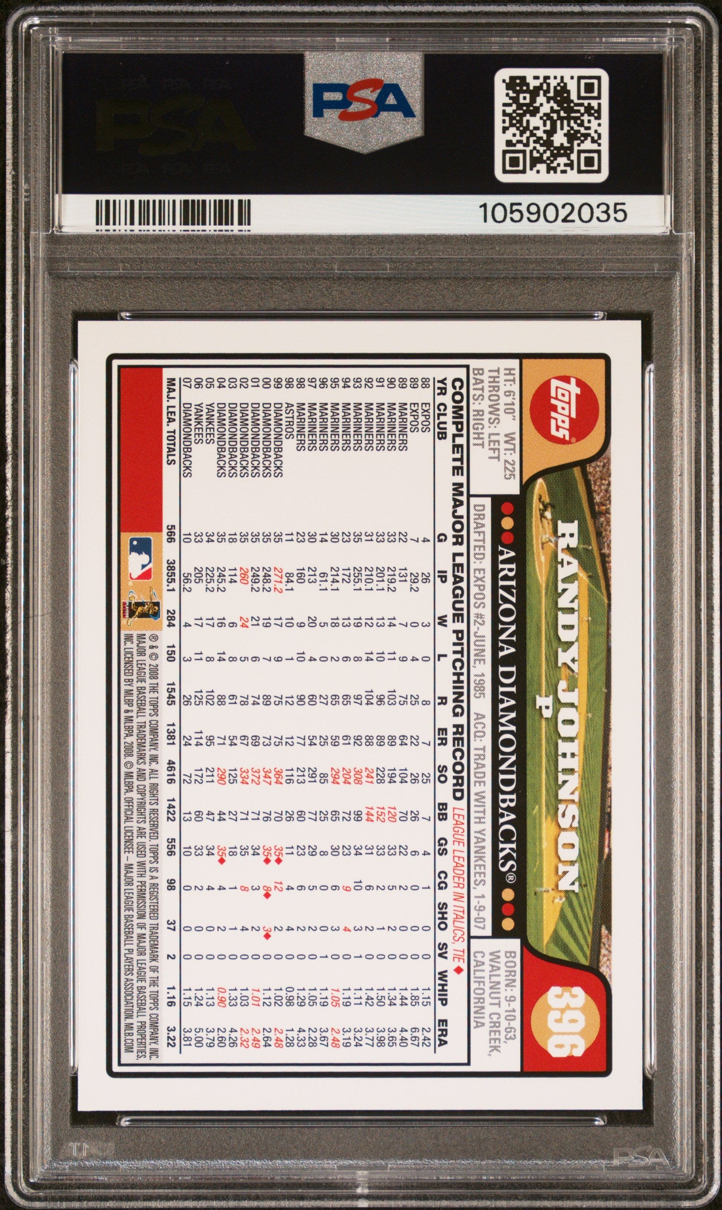 2008 Topps Randy Johnson #396 Graded PSA 9 Mint Rare Dbacks HOF!