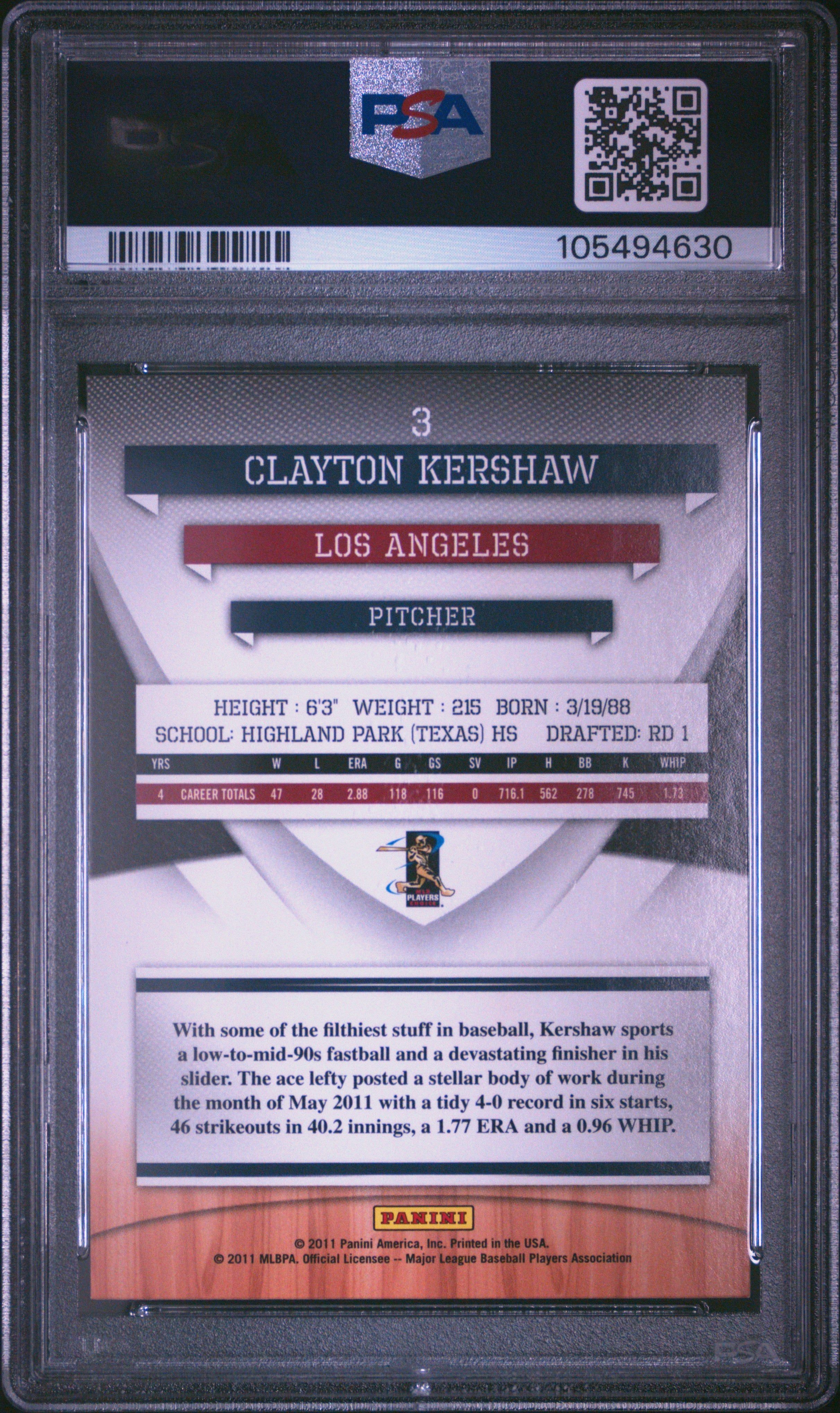 2011 Donruss Elite Extra Edition Clayton Kershaw #3 Graded PSA 9 Mint Rare!