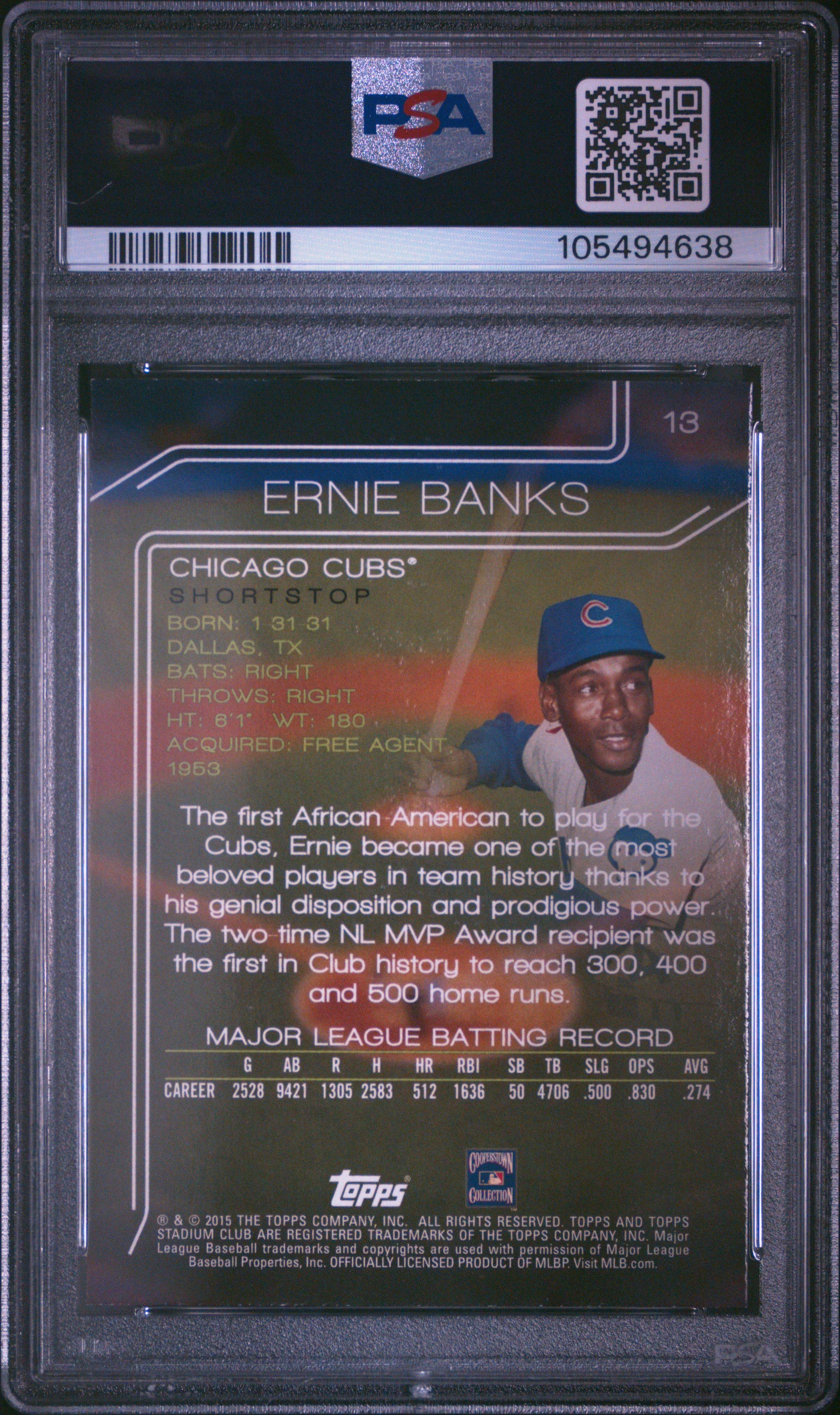 Home 2015 Topps Stadium Club Ernie Banks #13 Black Foil Barack Obama PSA 9 Mint Rare!